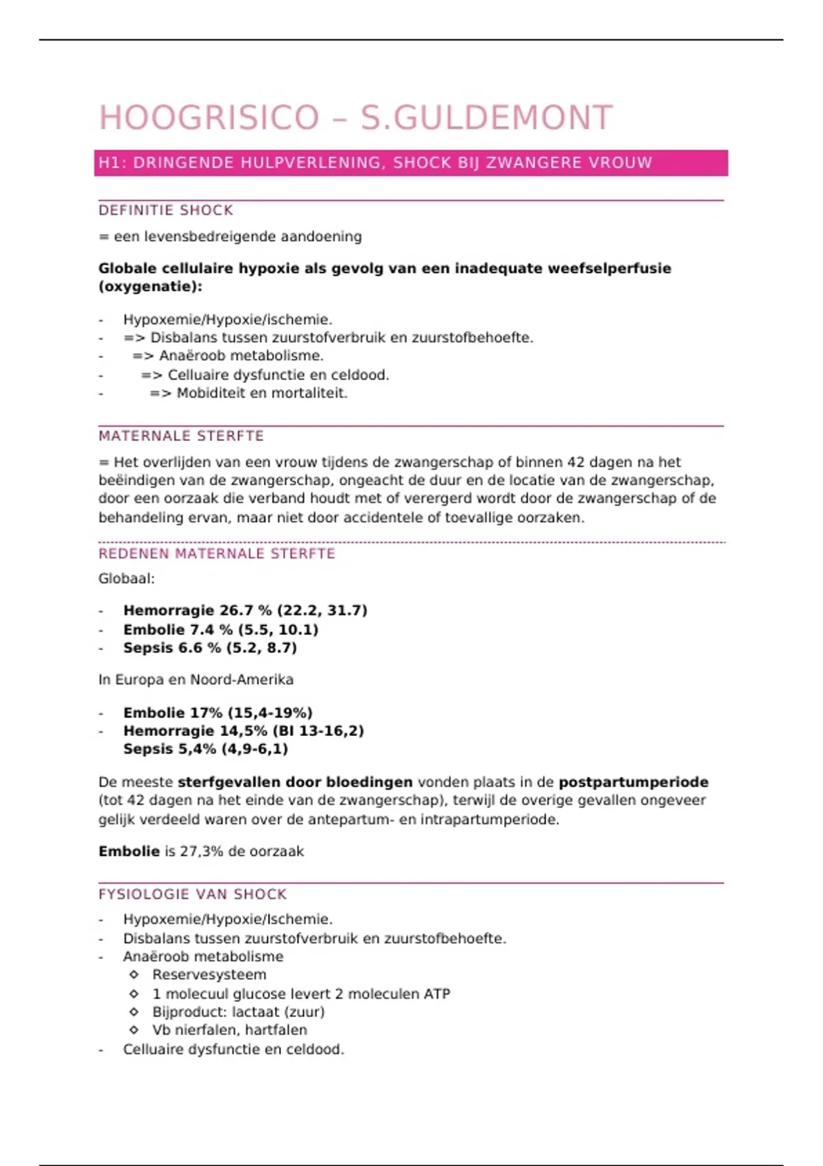 H1: DRINGENDE HULPVERLENING, SHOCK BIJ ZWANGERE VROUW