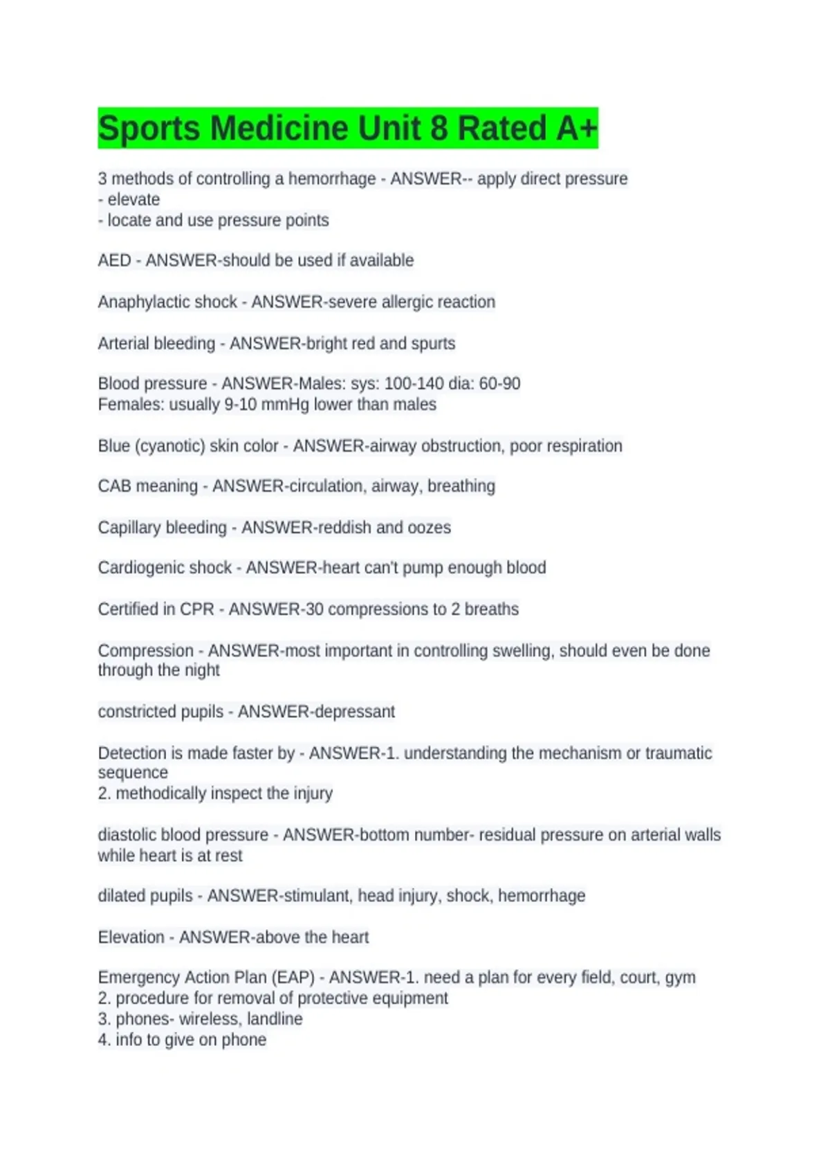 Sports Medicine Unit 8 Rated A+