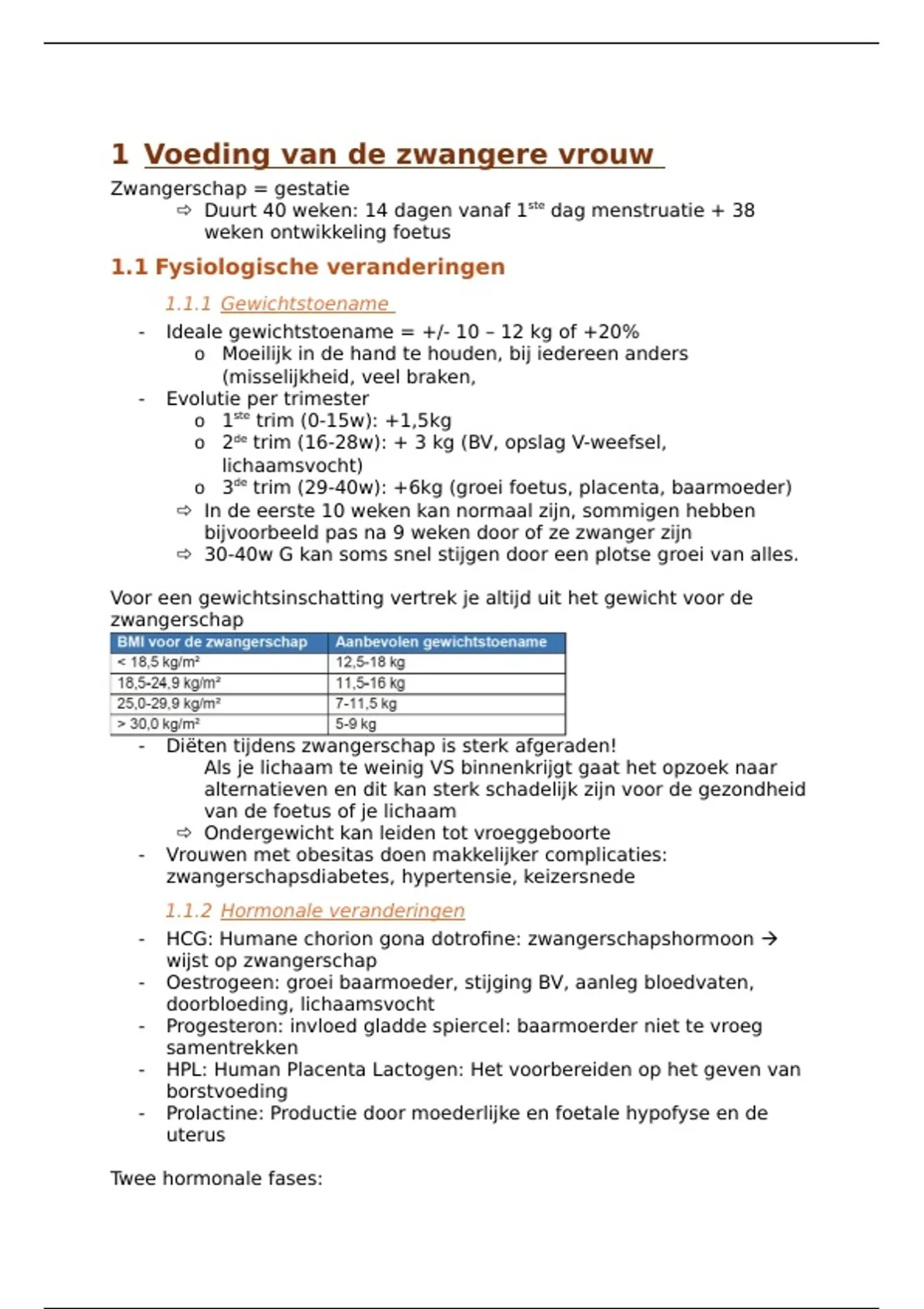- Ideale gewichtstoename = +/- 10 – 12 kg of +20%