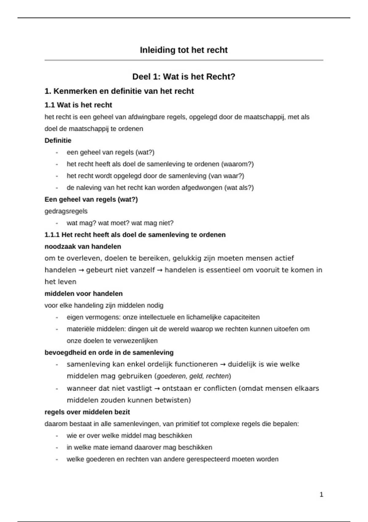 Samenvatting van het vak inleiding tot het recht, uit het 1e jaar juridische administratieve ondersteuning. Cursus 'inleiding tot het recht' geschreven door Mark Van Hoecke en Boudewijn Bouckaert, editie 2024.