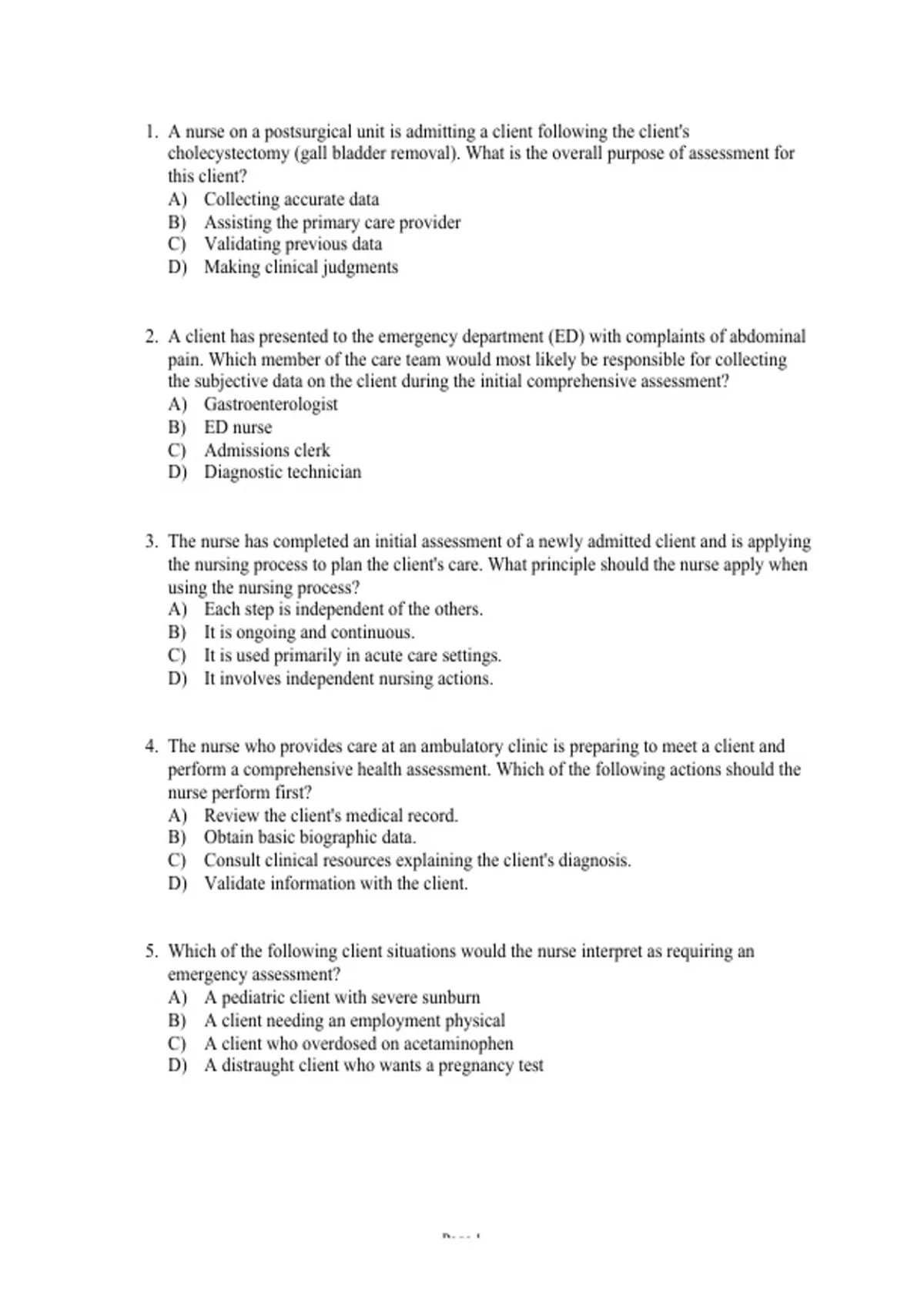 8. The nurse has completed the comprehensive health assessment of a client who has been