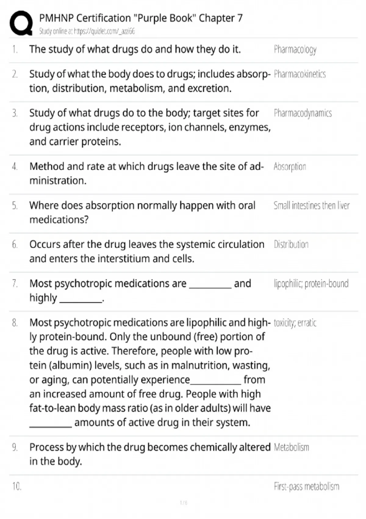 PMHNP Certification / Purple Book Chapter 7 / Study Guide / New Version 2025 / Score 100%