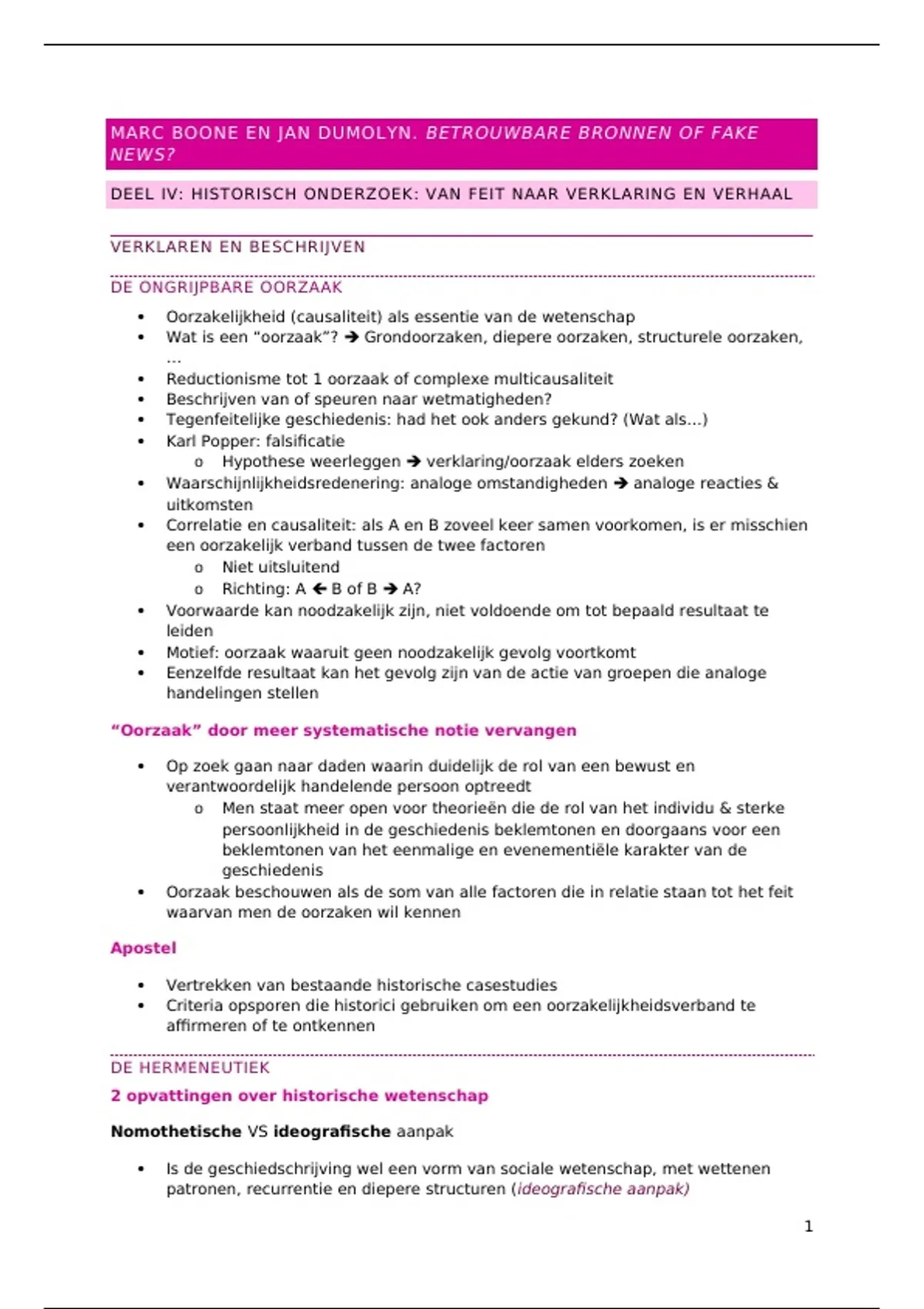 Samenvatting Betrouwbare bronnen of fake news? - Overzicht van de historische kritiek