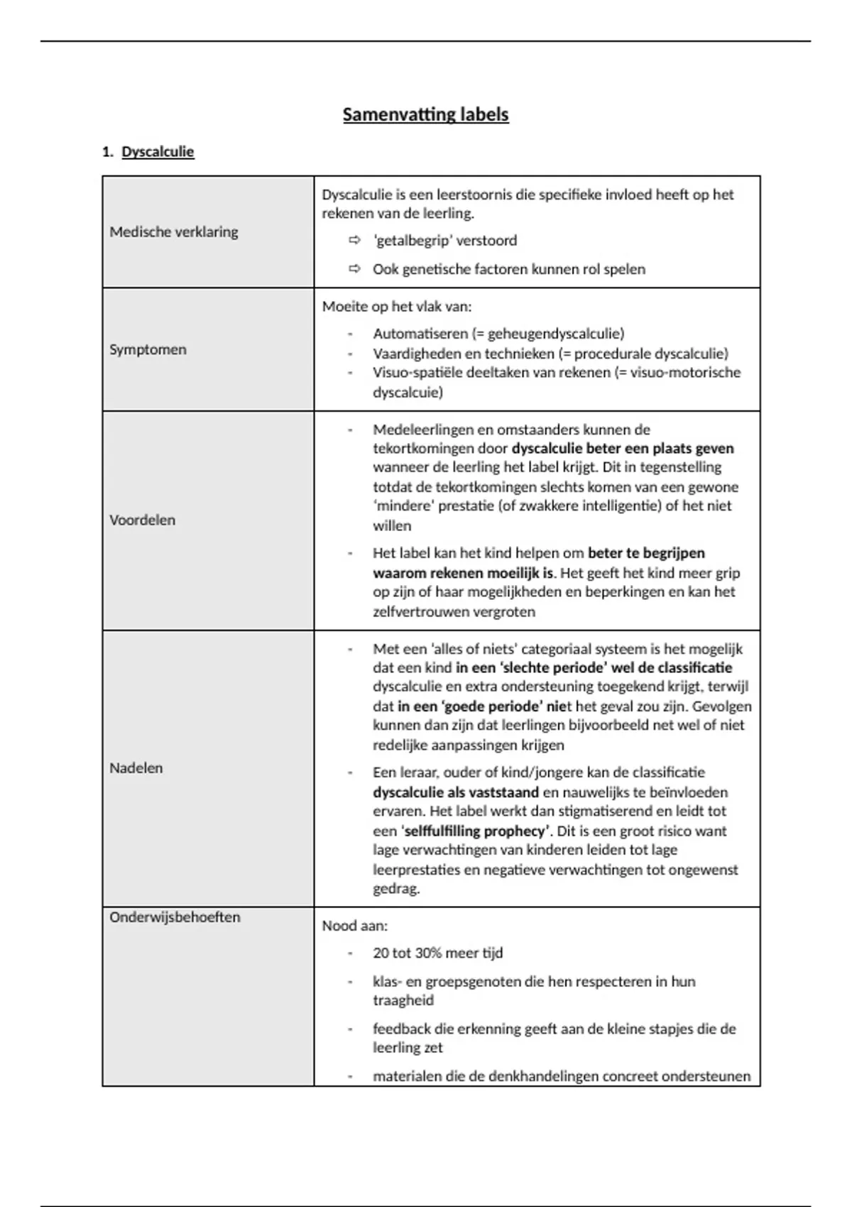 Dit is een samenvatting van de labels en redelijke aanpassingen voor het vak Zorg op School op Odisee Aalst.