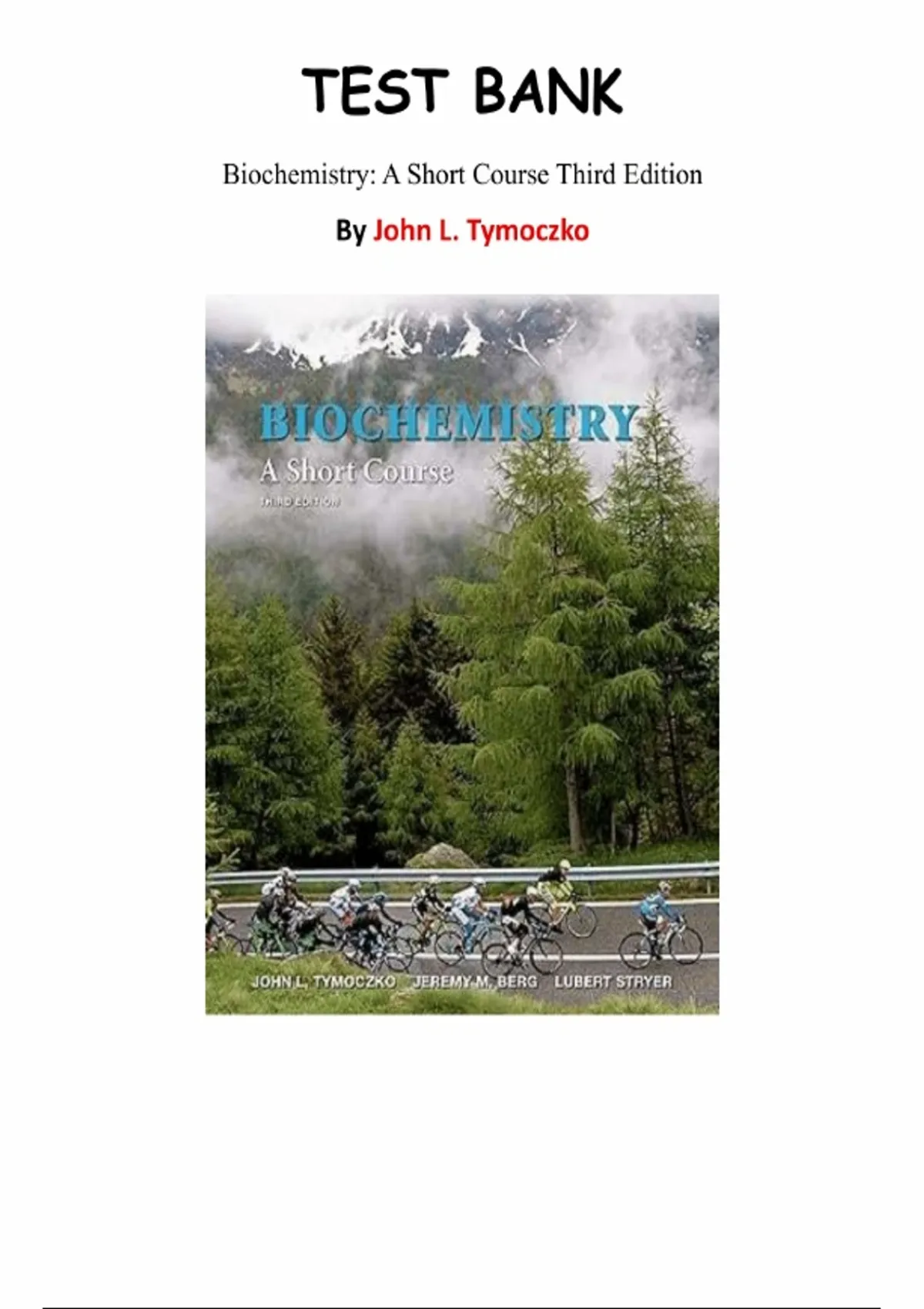 Test Bank for Biochemistry: A Short Course Third Edition by John L. Tymoczko | Chapter 1-41 |Verified Solutions
