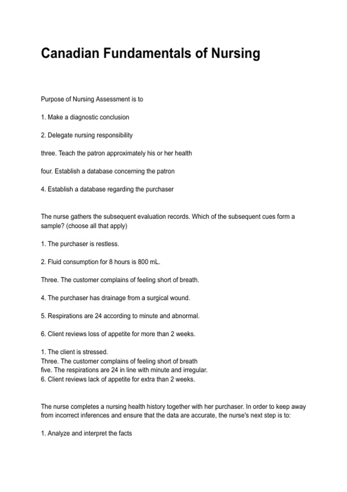 Canadian Fundamentals of Nursing NEWEST 2026/2027 ACTUAL EXAM COMPLETE QUESTIONS AND CORRECT DETAILED ANSWERS (VERIFIED ANSWERS) |ALREADY GRADED A+||BRAND NEW!!