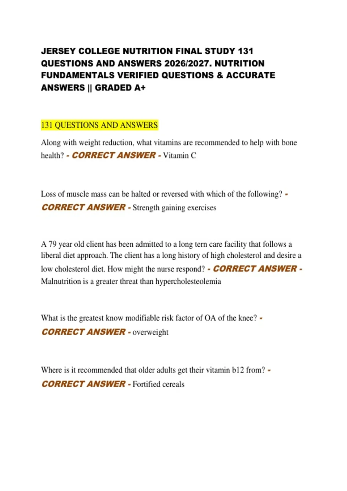 QUESTIONS AND ANSWERS 2026/2027. NUTRITION