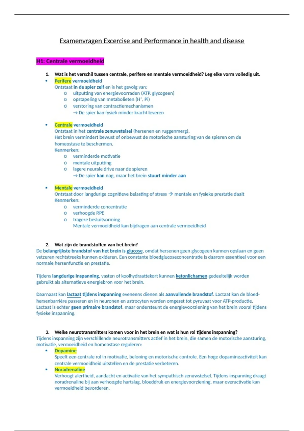 1. Wat is het verschil tussen centrale, perifere en mentale vermoeidheid? Leg elke vorm volledig uit.