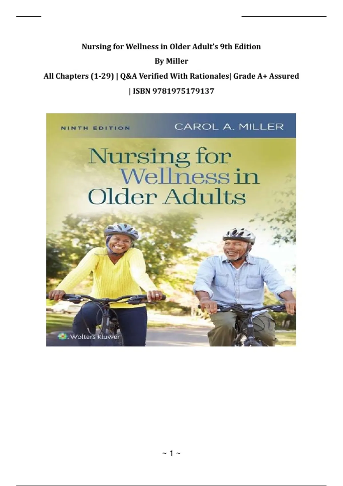 Nursing for Wellness in Older Adult’s (9th Edition) – ISBN 9781975179137 | Comprehensive Q&A With Rationales | Complete Chapters 1–29