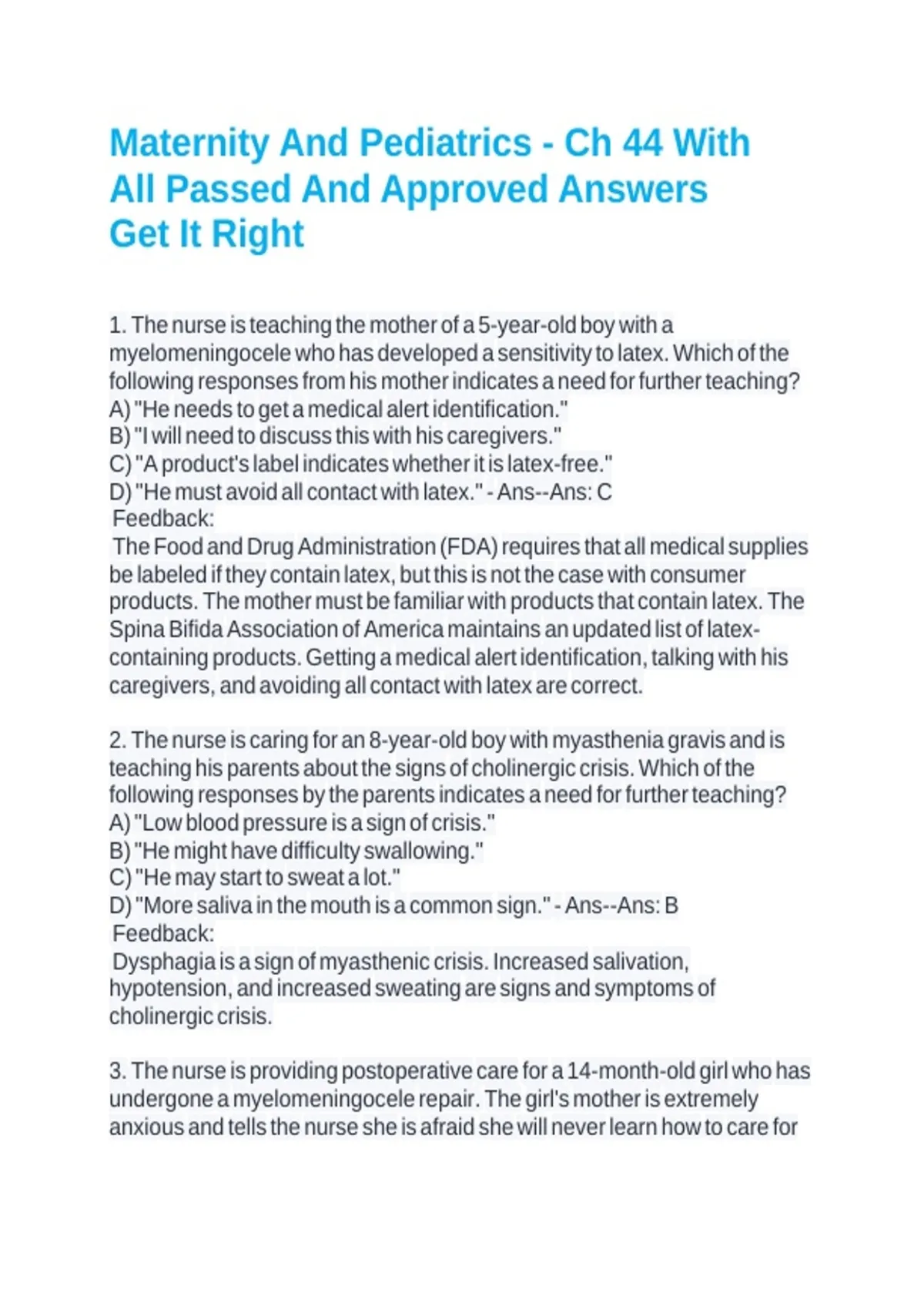 1. The nurse is teaching the mother of a 5-year-old boy with a
