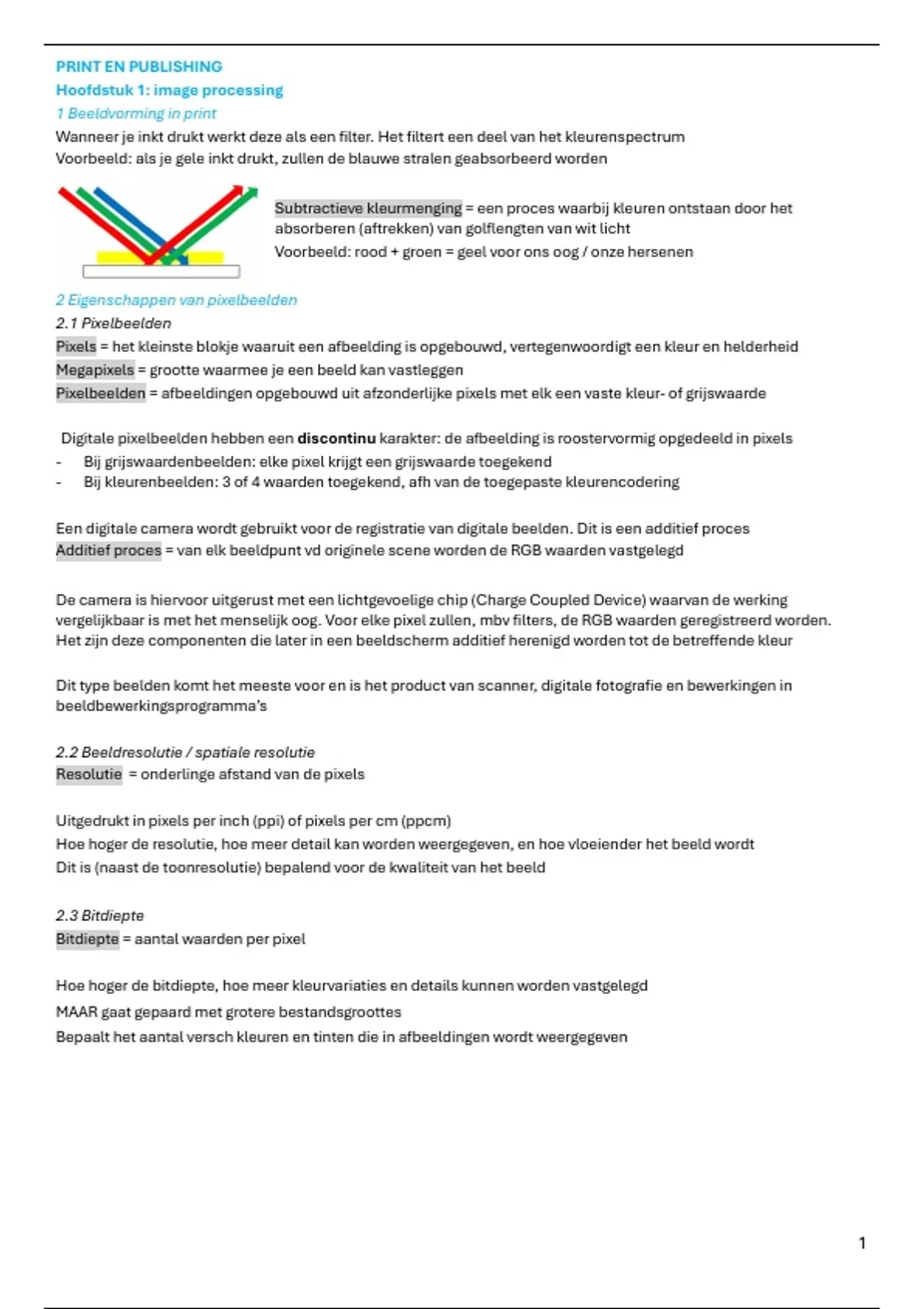 Deze samenvatting bevat mijn eigen notities en alle modules die gegeven werden bij het vak Print & Publishing op Arteveldehogeschool. Ook bevat het document mogelijke examenvragen die gegeven werden in de les!
