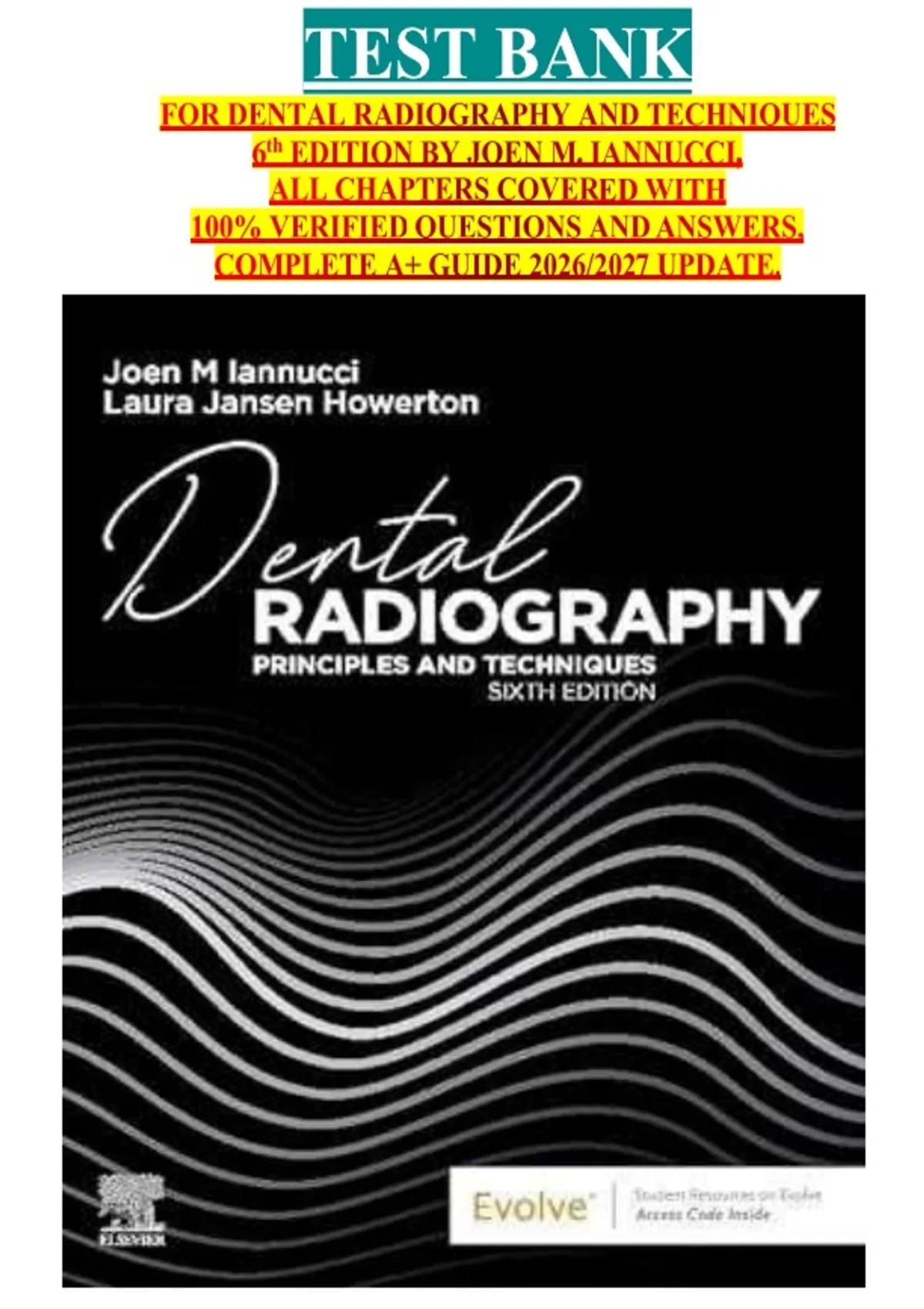 TEST BANK FOR DENTAL RADIOGRAPHY AND TECHNIQUES 6th EDITION BY JOEN M. IANNUCCI, ALL CHAPTERS COVERED WITH 100% VERIFIED QUESTIONS AND ANSWERS, COMPLETE A+ GUIDE 2026/2027 UPDATE.