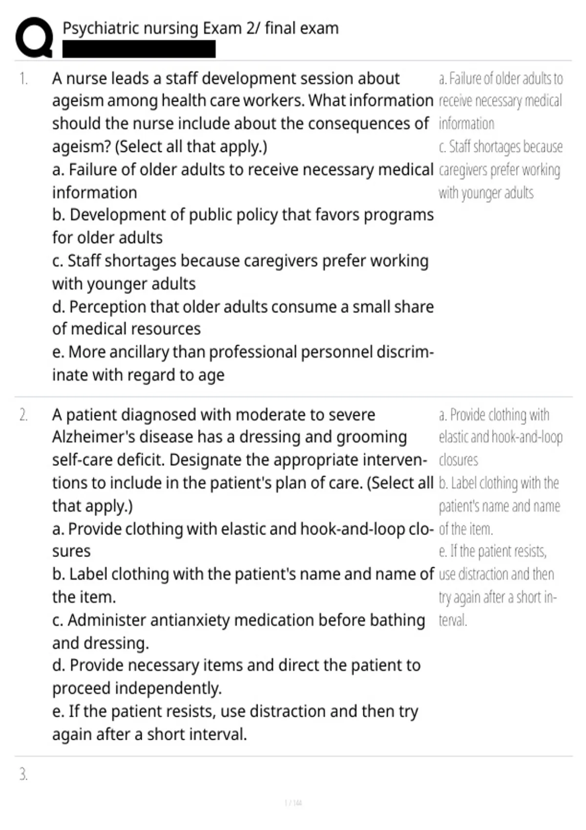 1. A nurse leads a staff development session about a. Failure of older adults to