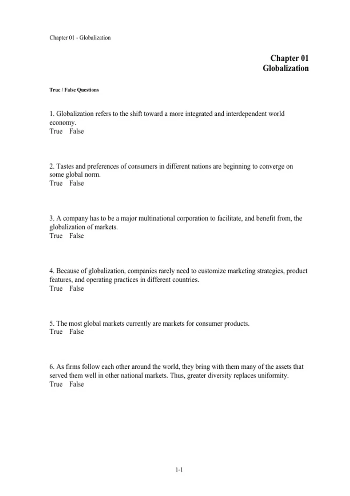 4. Because of globalization, companies rarely need to customize marketing strategies, product