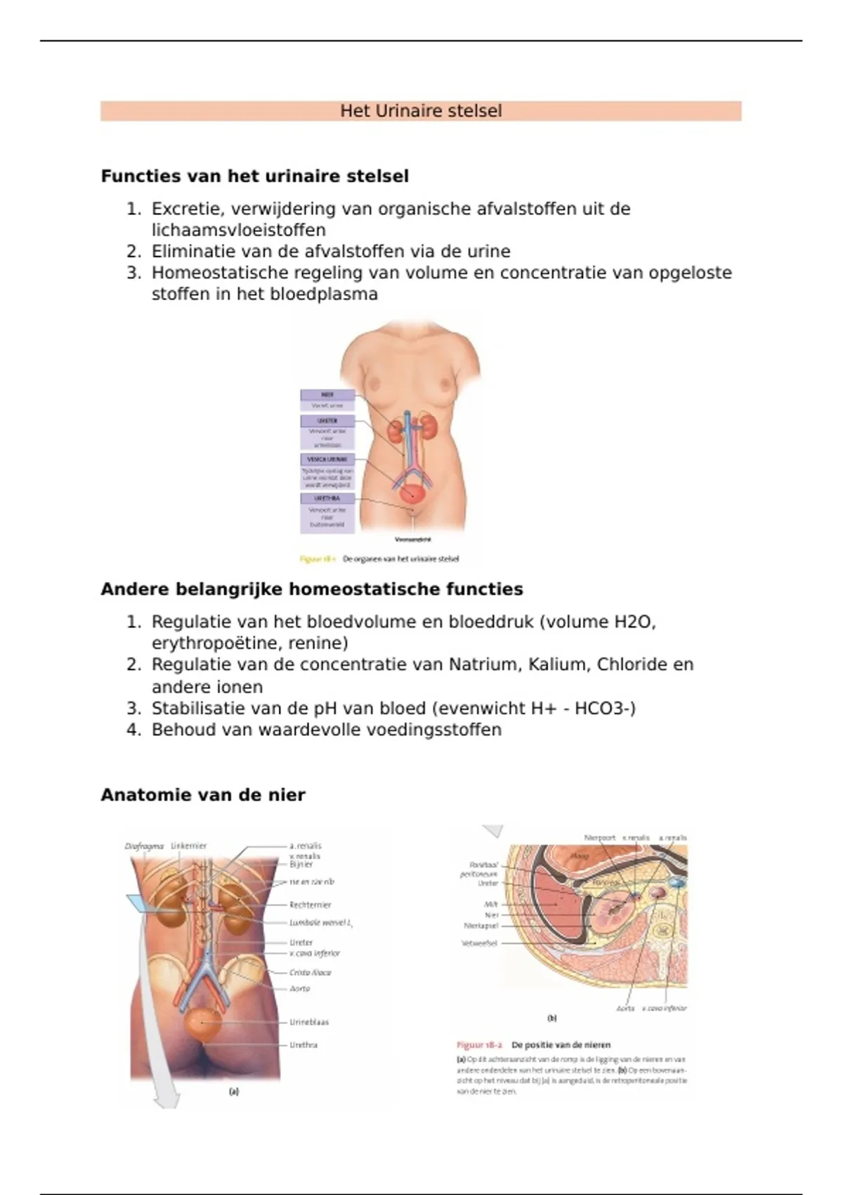 2. Eliminatie van de afvalstoffen via de urine