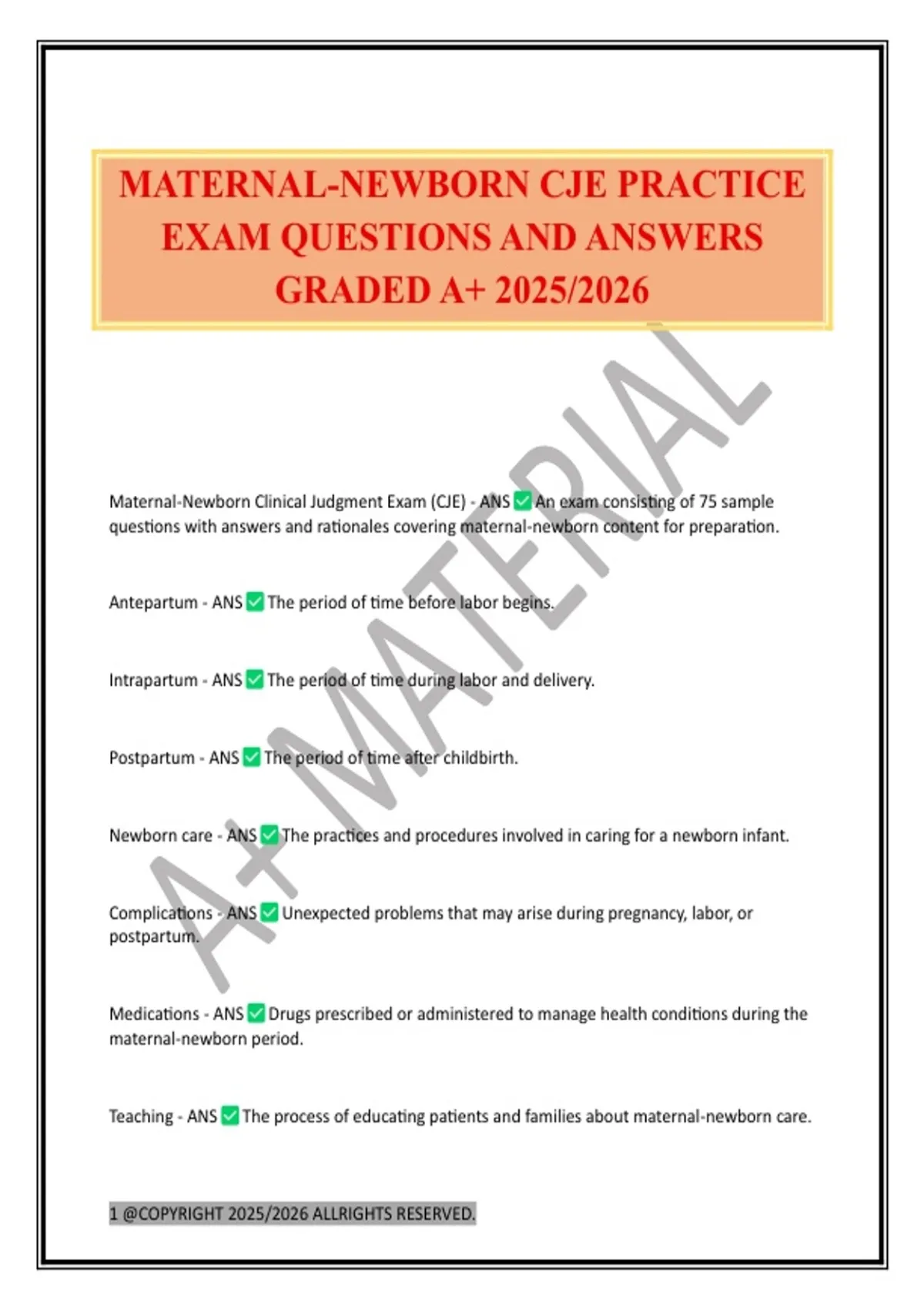 MATERNAL-NEWBORN CJE PRACTICE