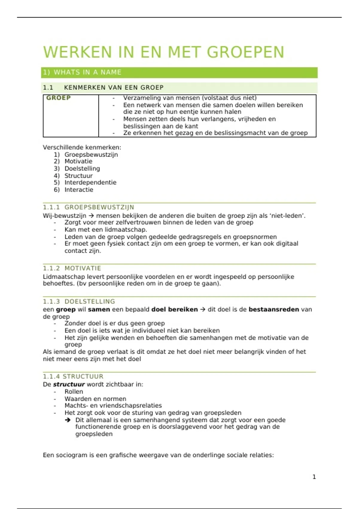 1.1 KENMERKEN VAN EEN GROEP