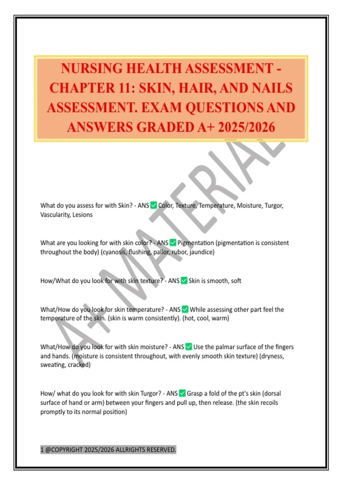 ASSESSMENT. EXAM QUESTIONS AND