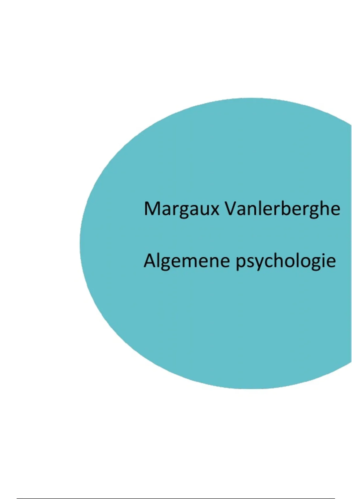 Dit is een overzichtelijke samenvatting van het vak Algemene psychologie die de inhoud van het boek en notities tijdens de les +pwp's bevat. Ik heb met deze samenvatting 18/20 gehaald! Veel succes!