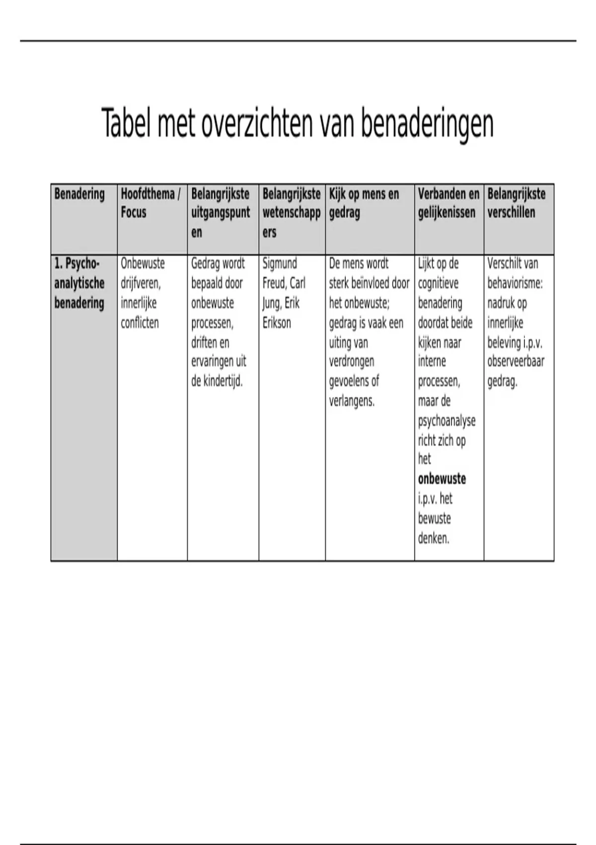 1. Psycho- Onbewuste Gedrag wordt Sigmund De mens wordt Lijkt op de Verschilt van
