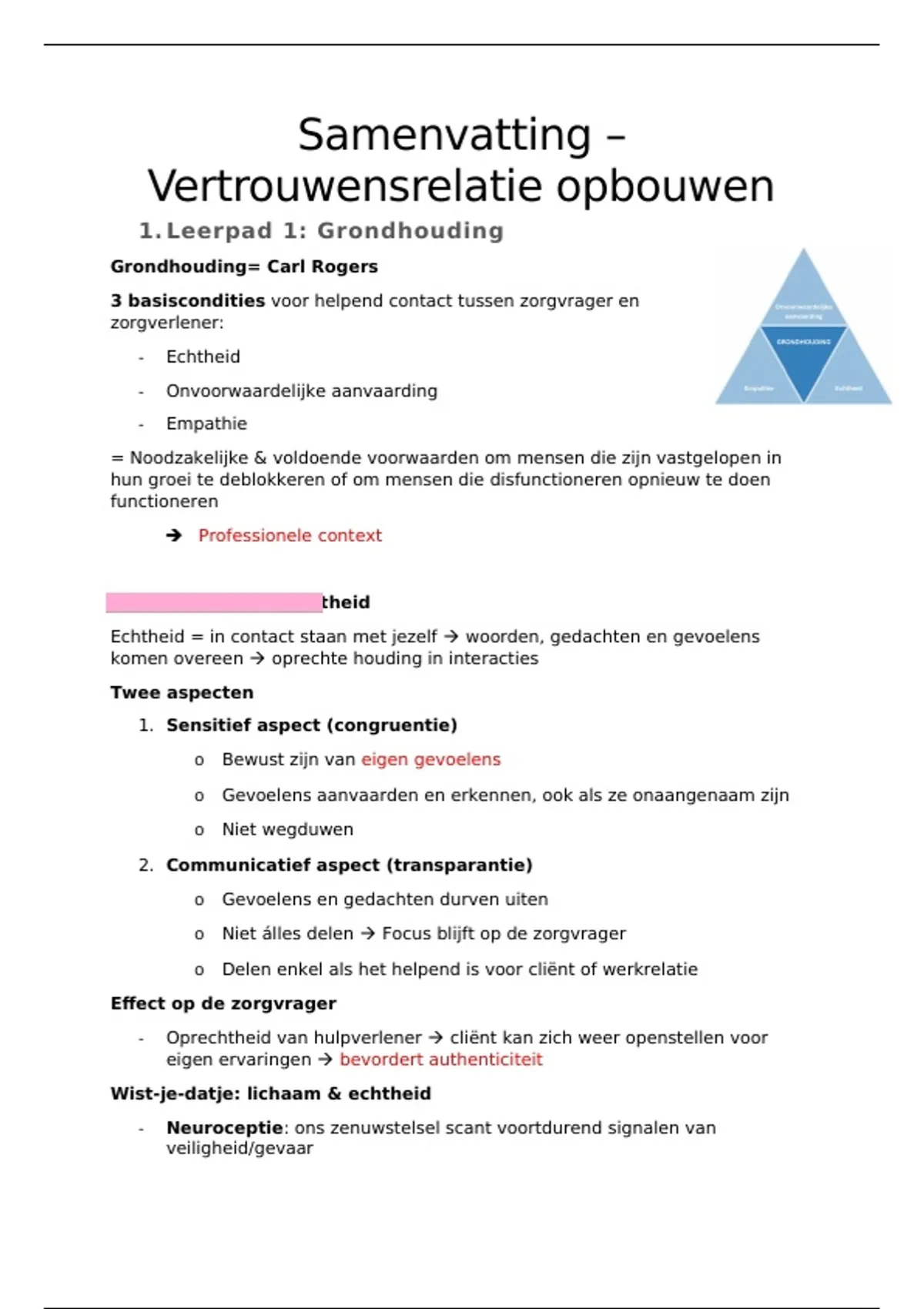 Echtheid = in contact staan met jezelf  woorden, gedachten en gevoelens