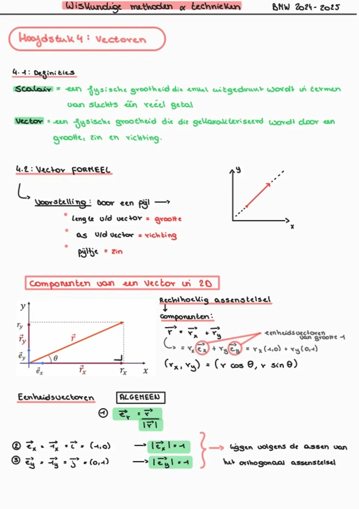 Samenvatting - Wiskundige methoden en technieken; H4 Vectoren
