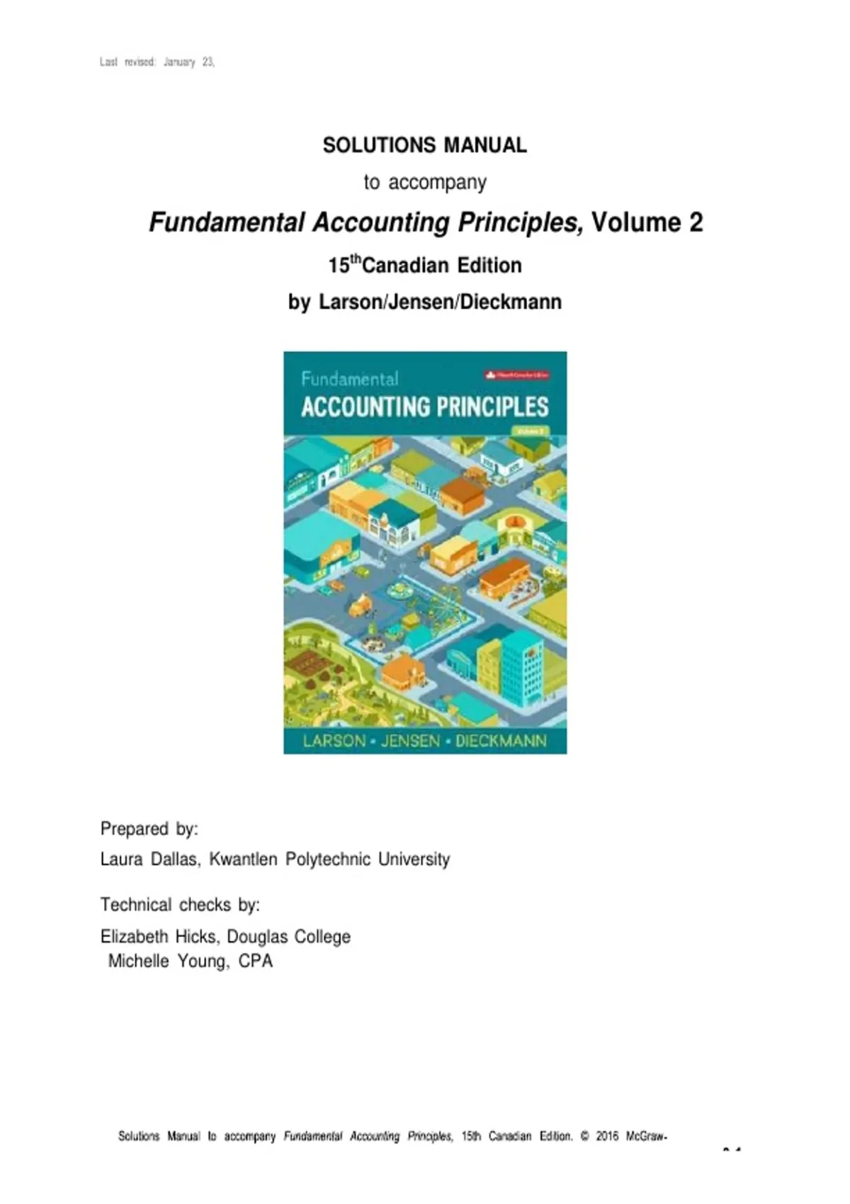 Fundamental Accounting Principles Volume 2, 17th Canadian Edition Larson