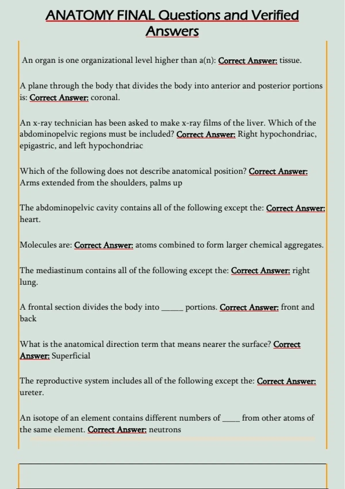 An organ is one organizational level higher than a(n): Correct Answer: tissue.