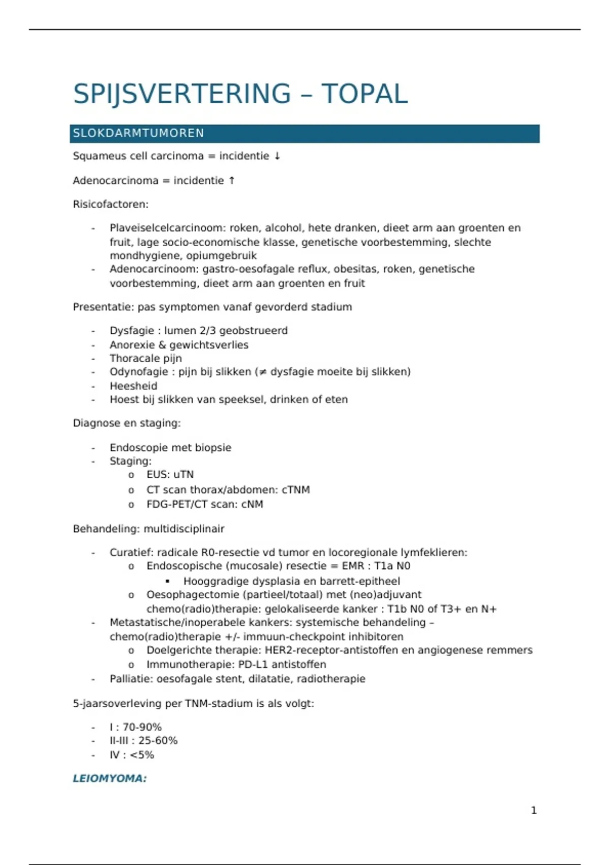- Adenocarcinoom: gastro-oesofagale reflux, obesitas, roken, genetische