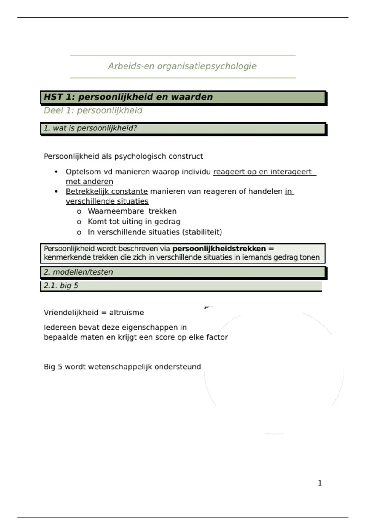 Persoonlijkheid wordt beschreven via persoonlijkheidstrekken =
