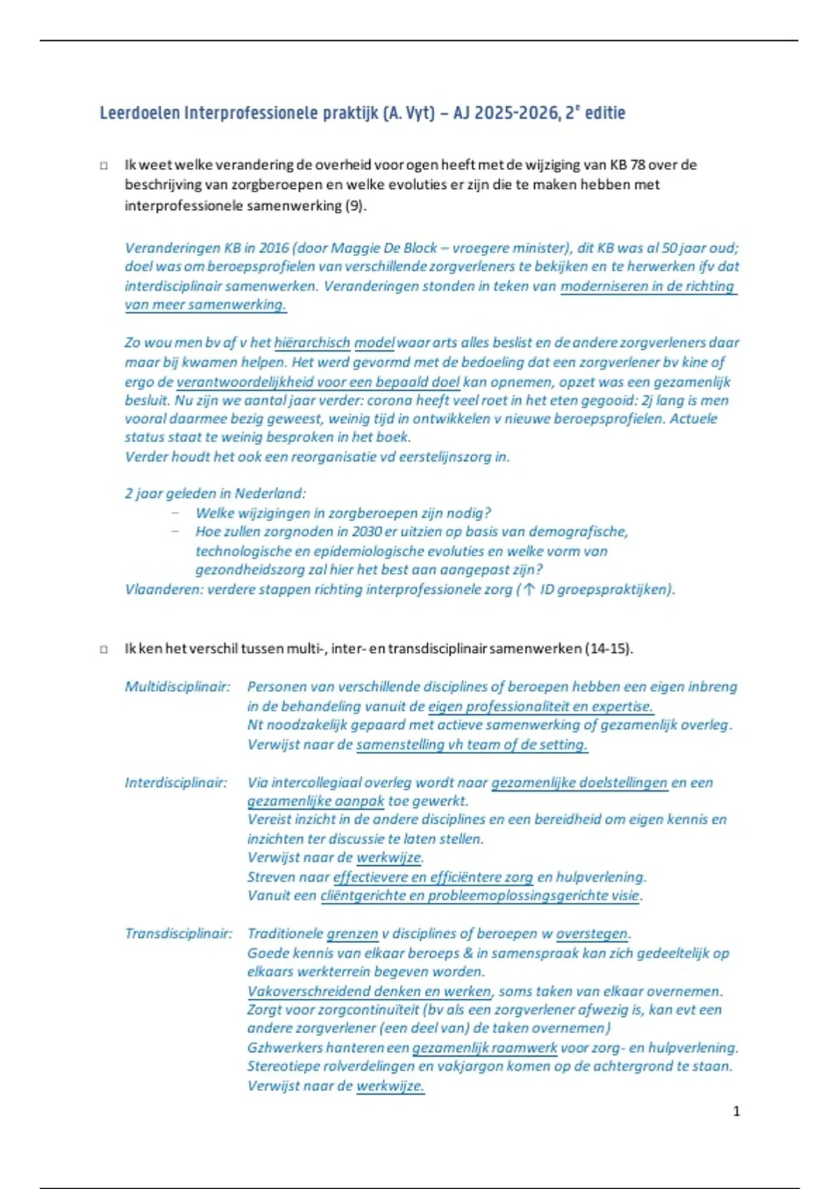 , □ Ik kan verduidelijken op welke manier men roloverlappingen tussen gezondheidswerkers