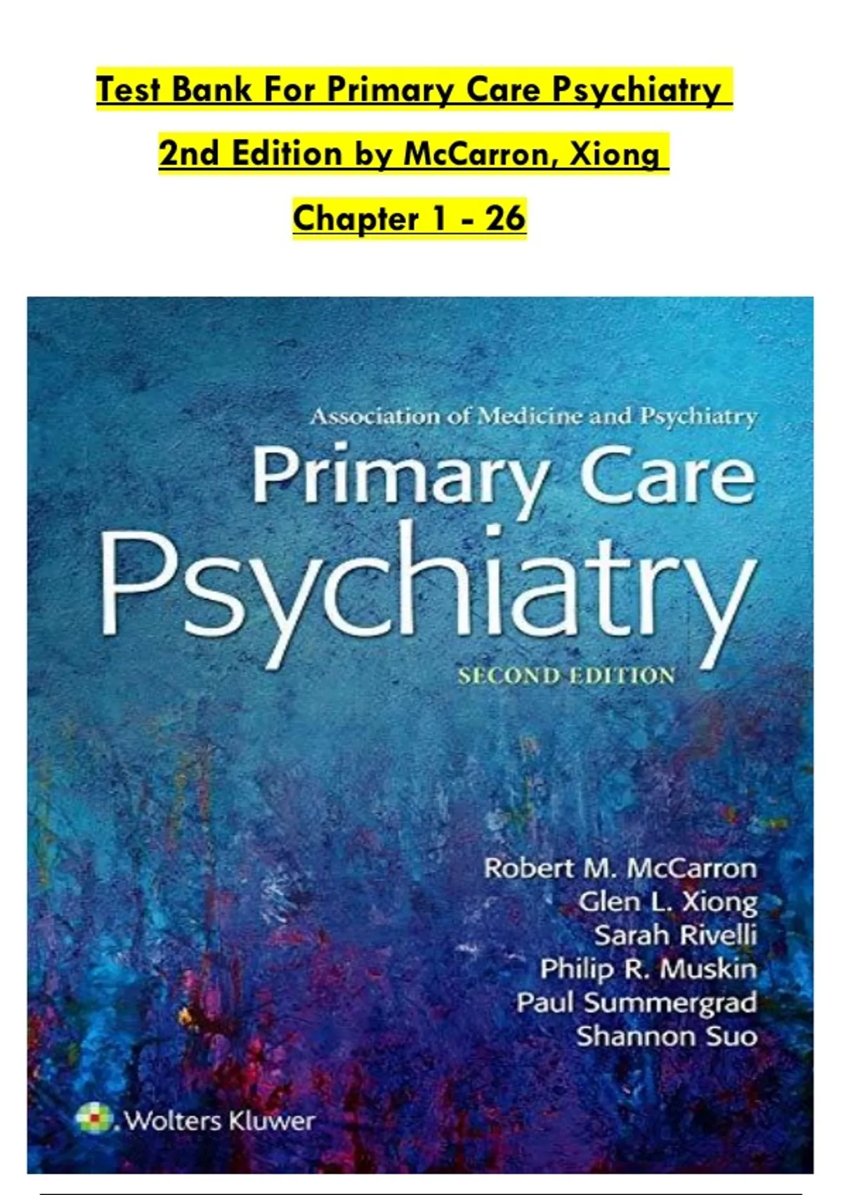 Test Bank For Primary Care Psychiatry 2nd Edition by McCarron, Xiong Chapter 1 - 26
