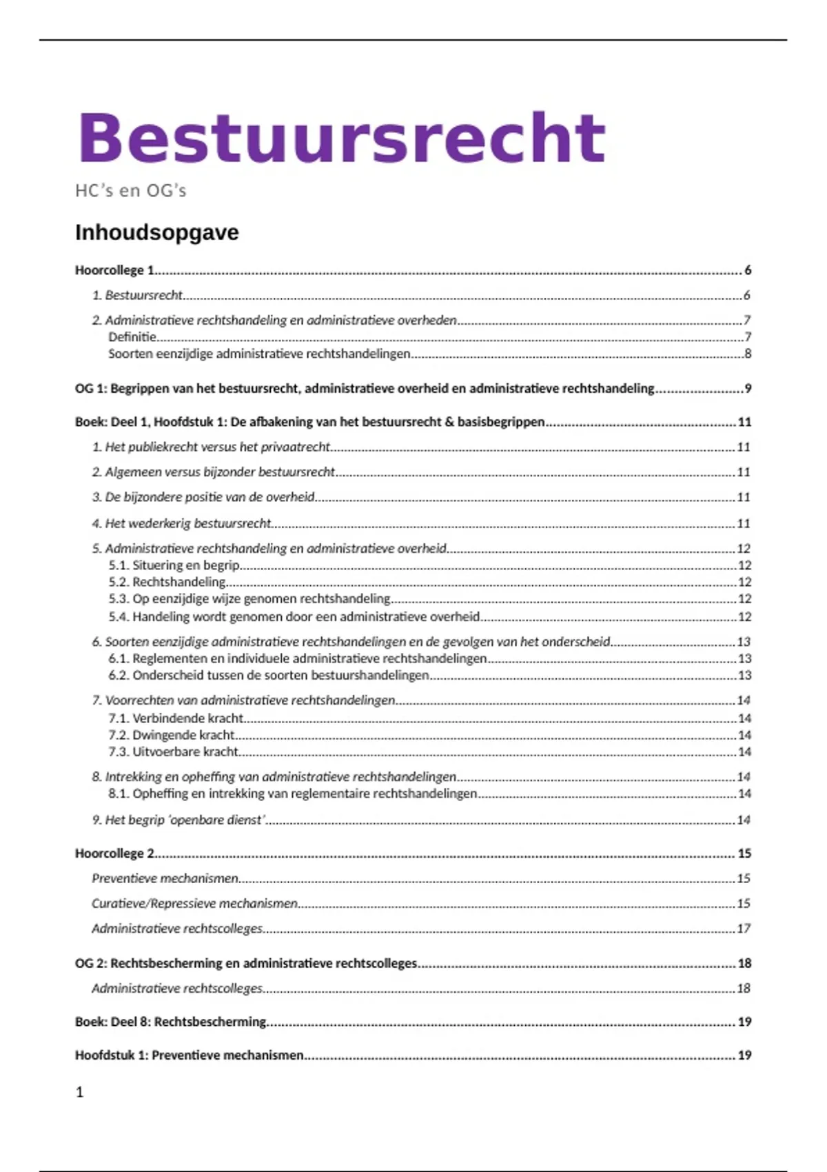 OG 1: Begrippen van het bestuursrecht, administratieve overheid en administratieve rechtshandeling.......................9