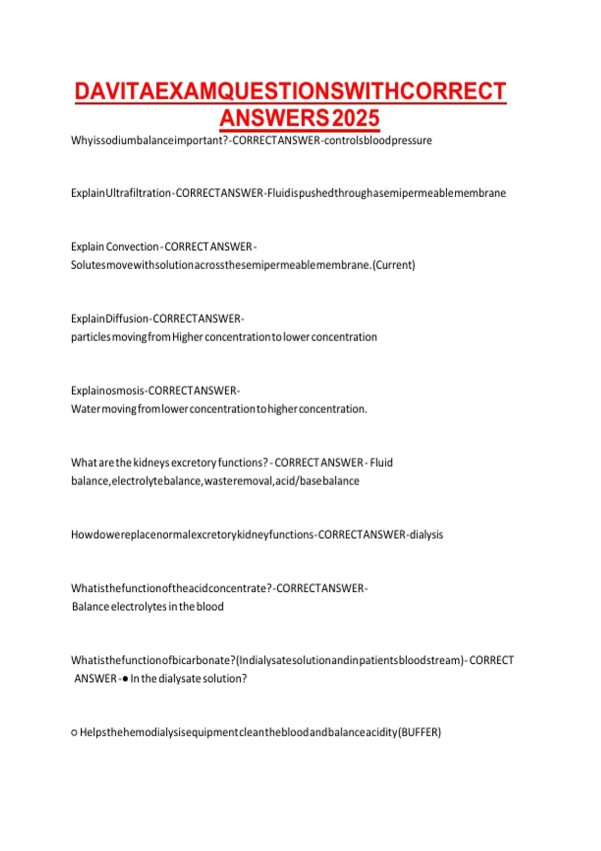 DAVITA EXAM QUESTIONS WITH CORRECT ANSWERS