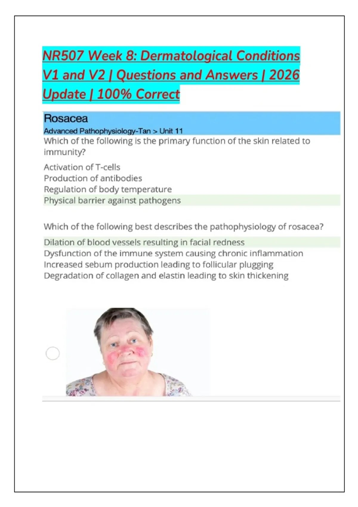 NR507 Week 8: Dermatological Conditions V1 and V2 | Questions and Answers | 2026 Update | 100% Correct