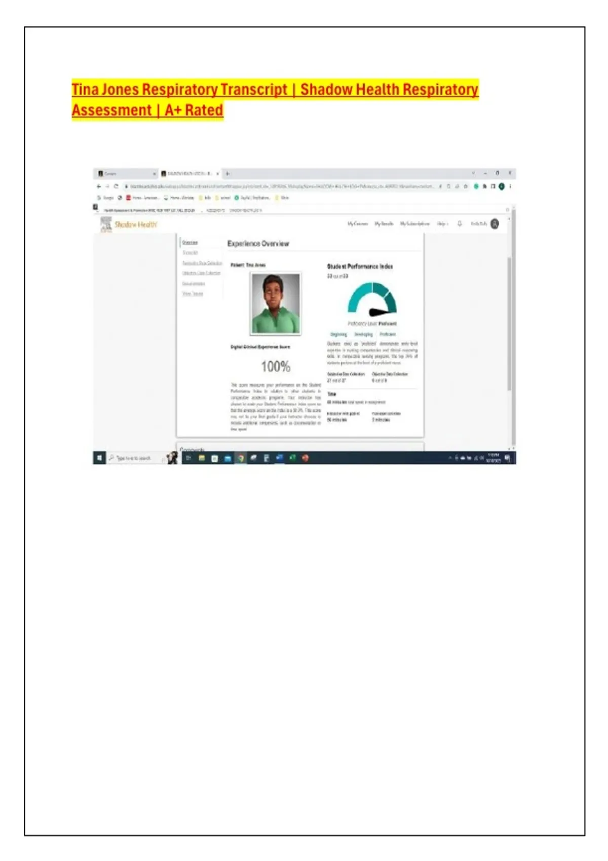 Tina Jones Respiratory Transcript | Shadow Health Respiratory Assessment | A+ Rated