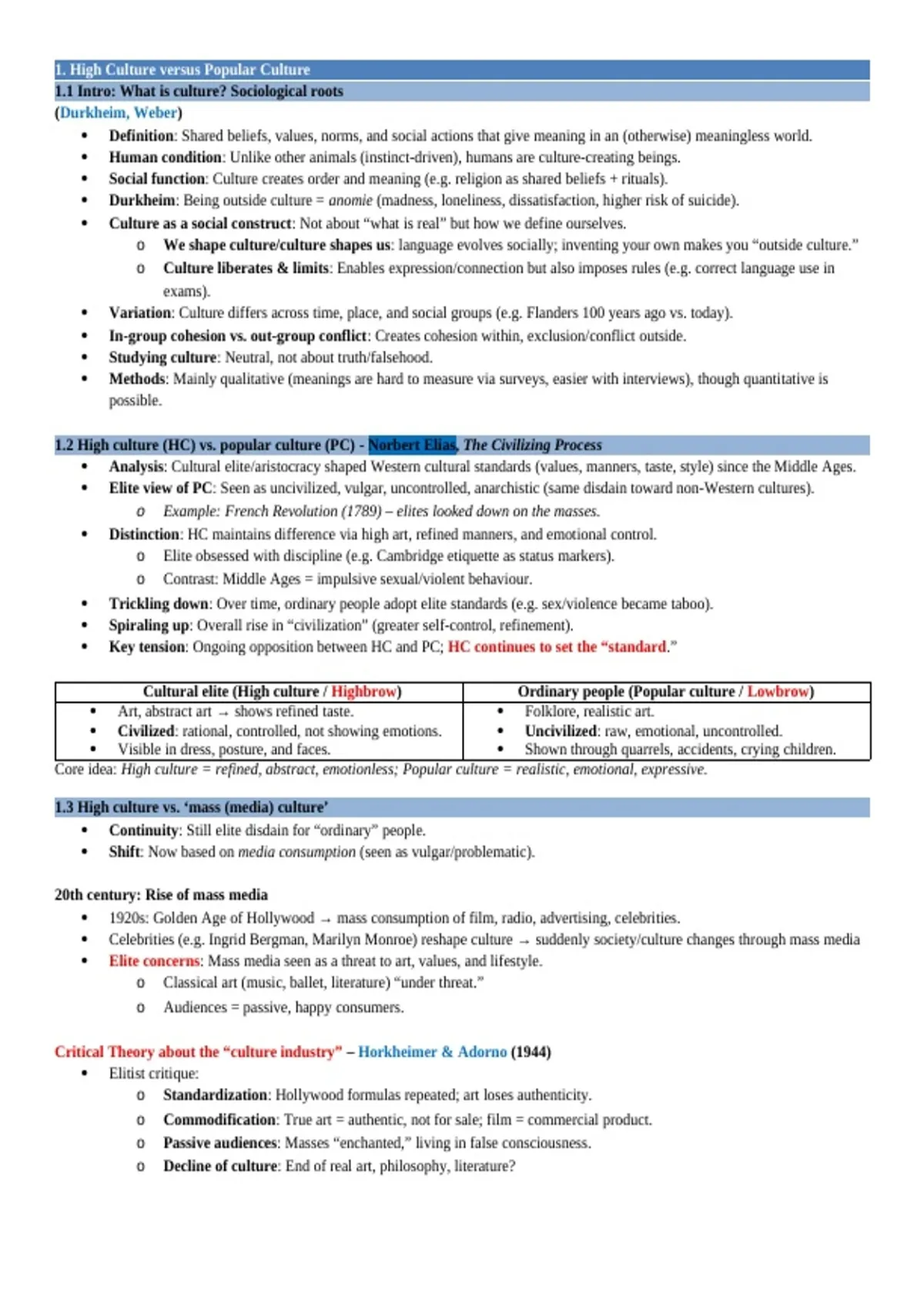 1.2 High culture (HC) vs. popular culture (PC) - Norbert Elias, The Civilizing Process