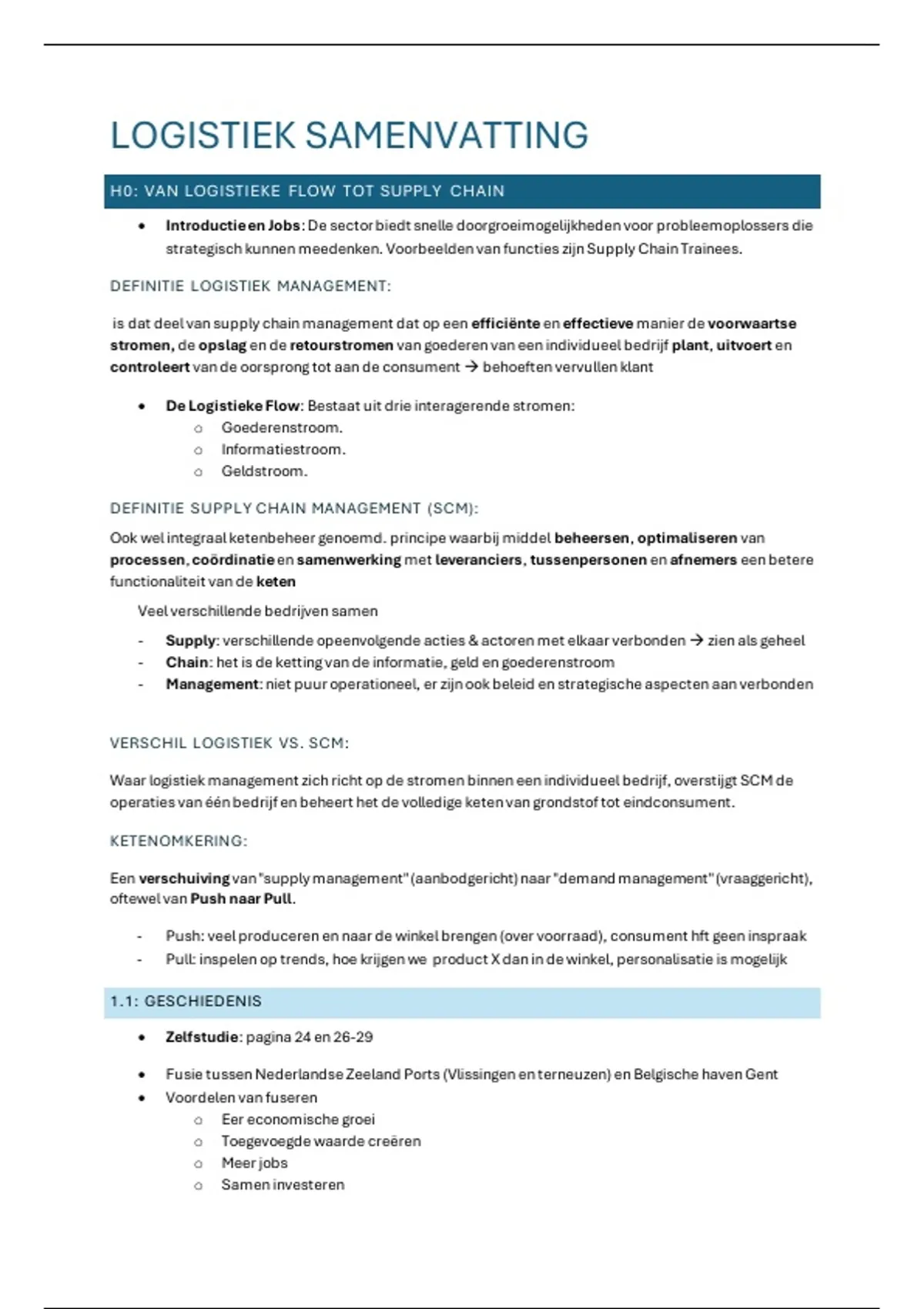 H0: VAN LOGISTIEKE FLOW TOT SUPPLY CHAIN