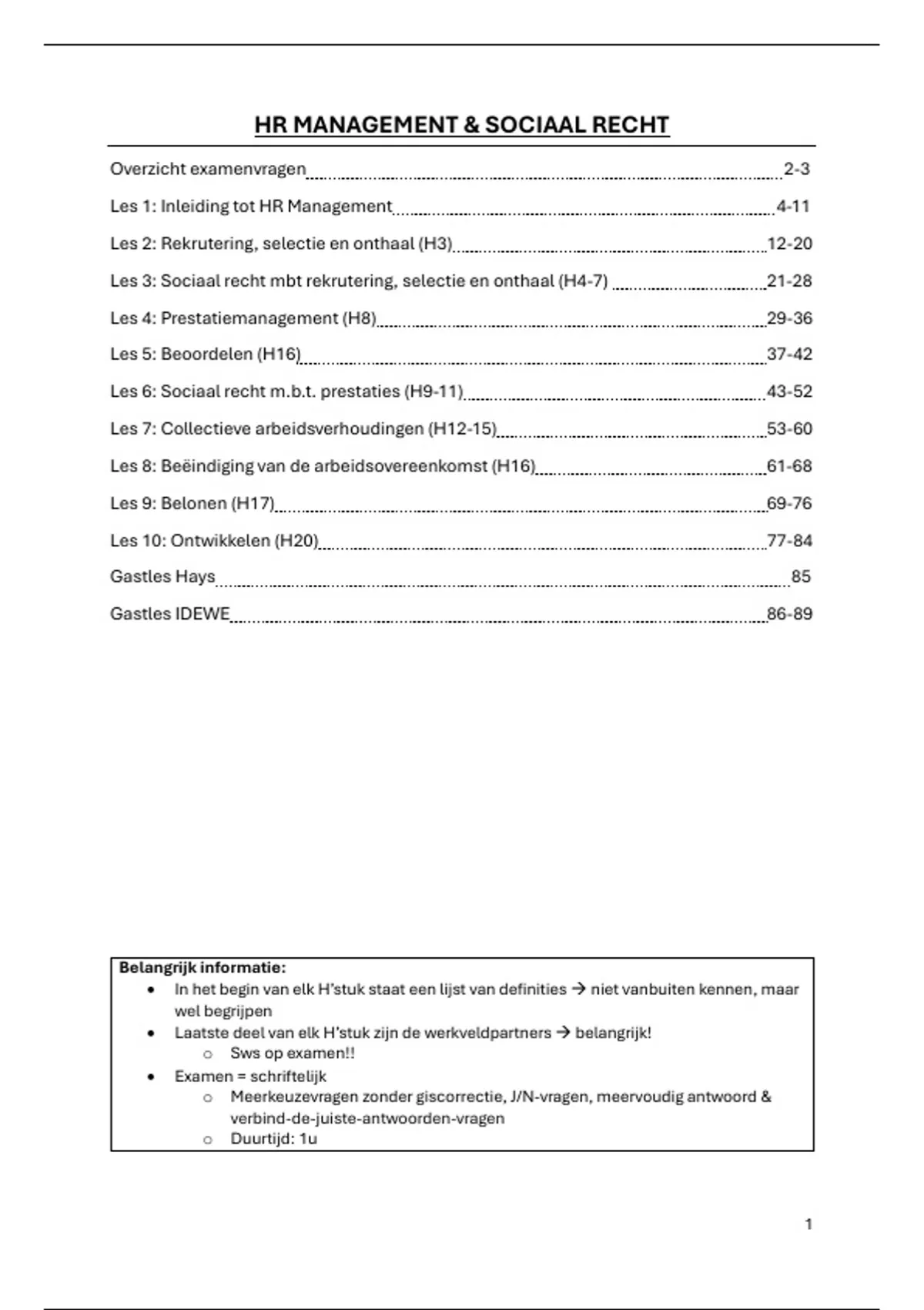 Samenvatting - HR Management en Sociaal Recht (YB1091)
