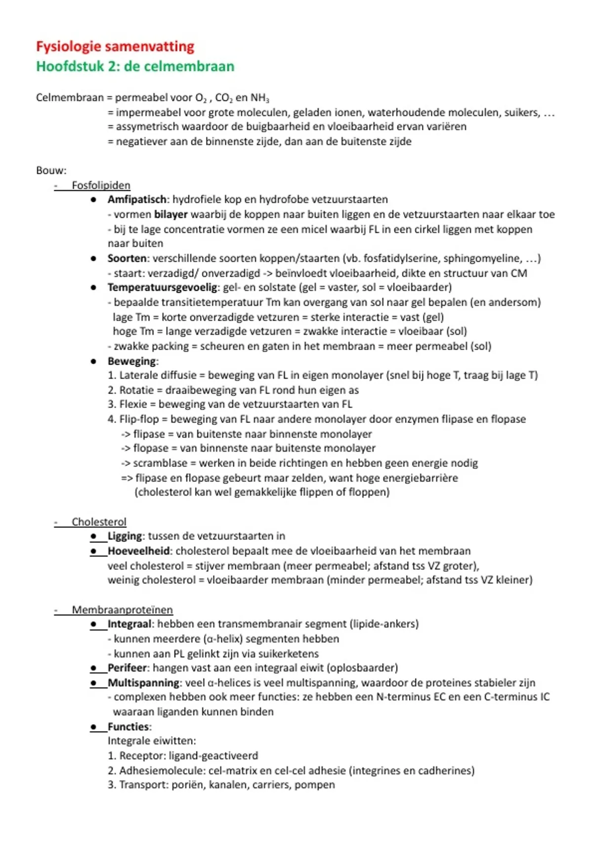 ● Hoeveelheid: cholesterol bepaalt mee de vloeibaarheid van het membraan