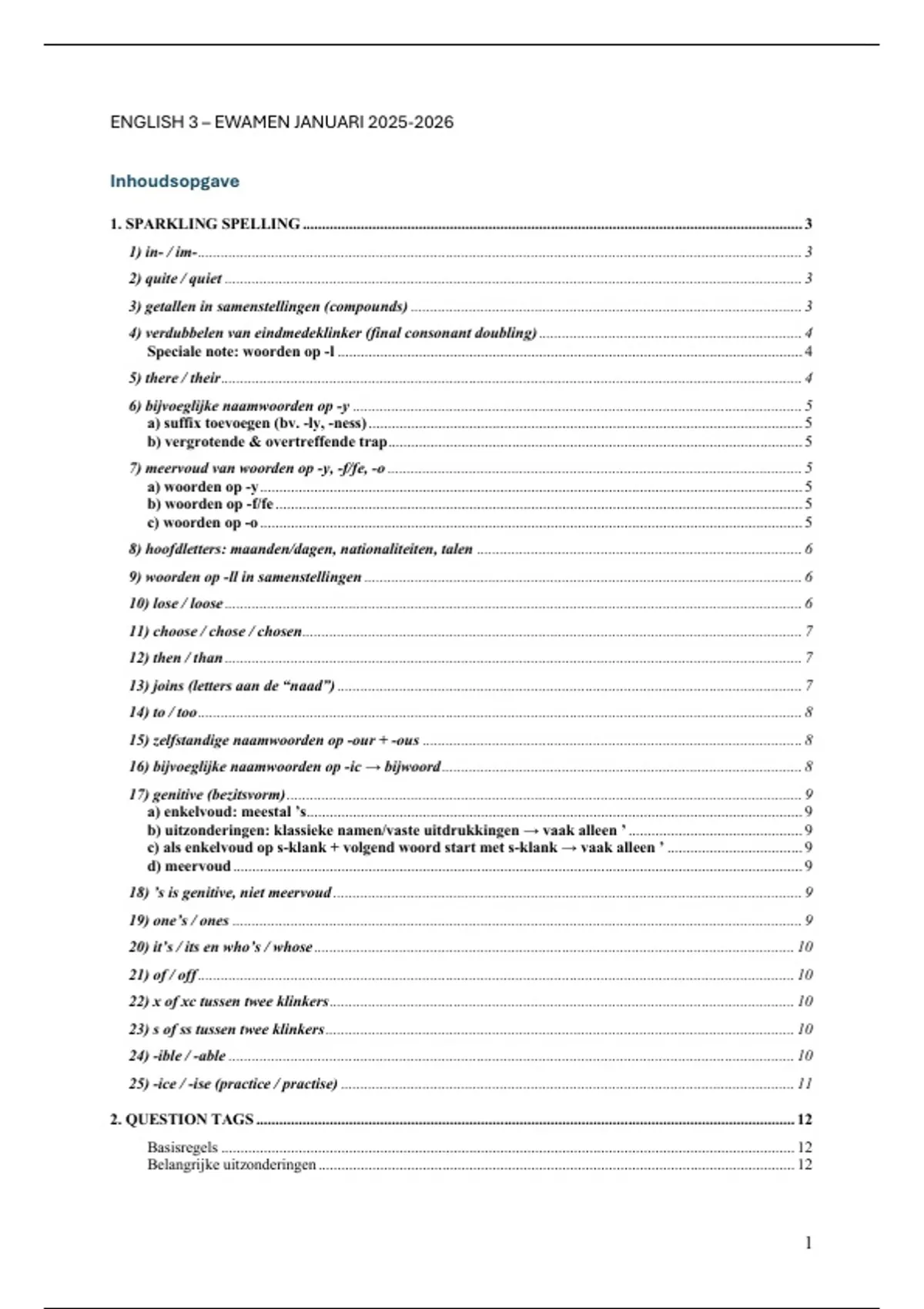 17) genitive (bezitsvorm) ..................................................................................................................................... 9