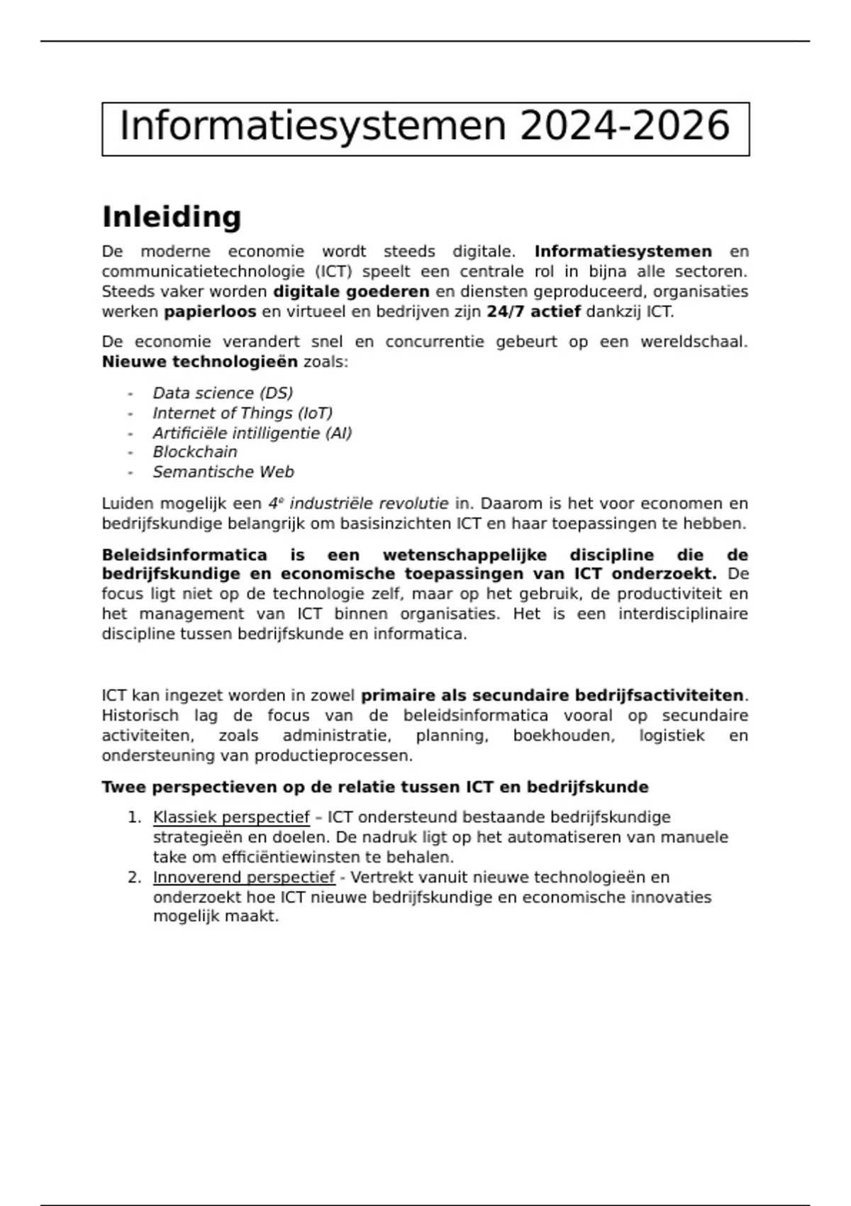 Samenvatting informatiesystemen, gebaseerd op de syllabus + hoorcolleges. Bevat alle nodige leerstof voor het examen.