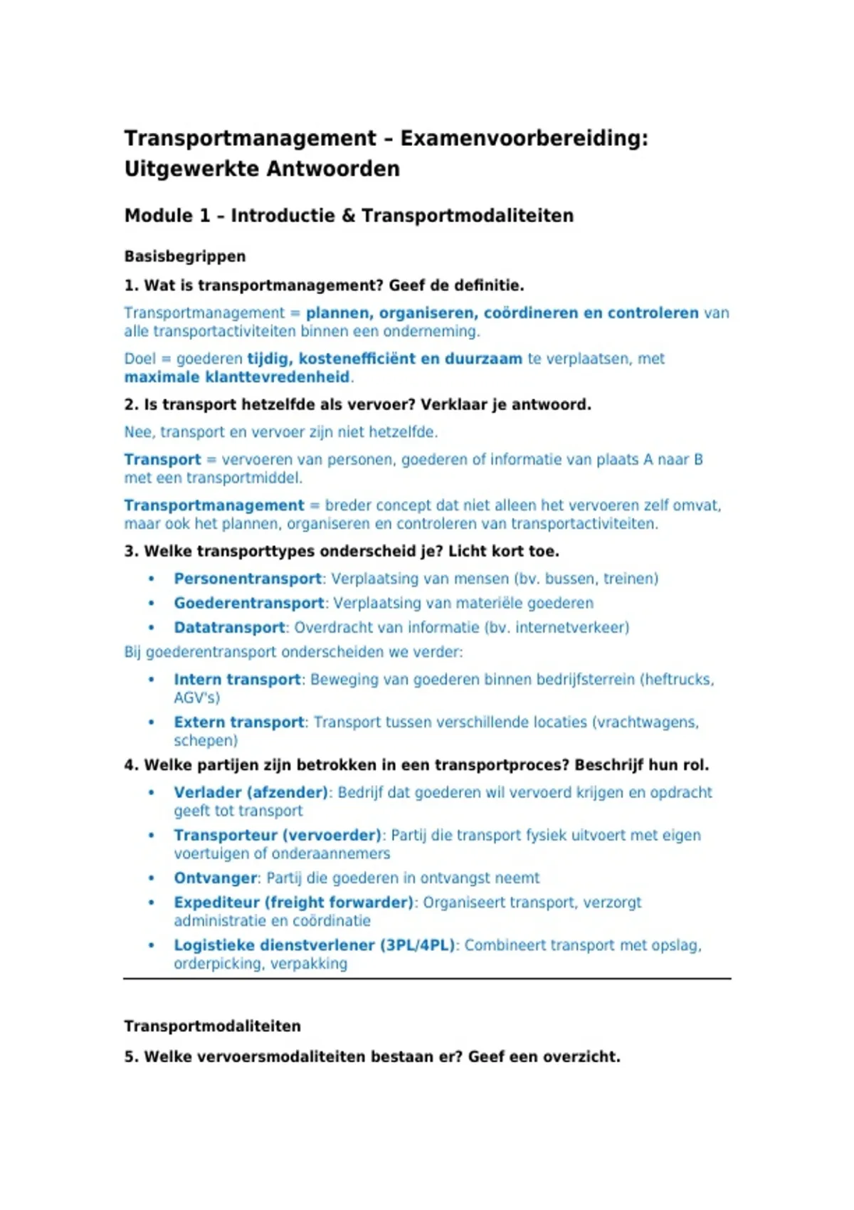 5. Welke vervoersmodaliteiten bestaan er? Geef een overzicht.