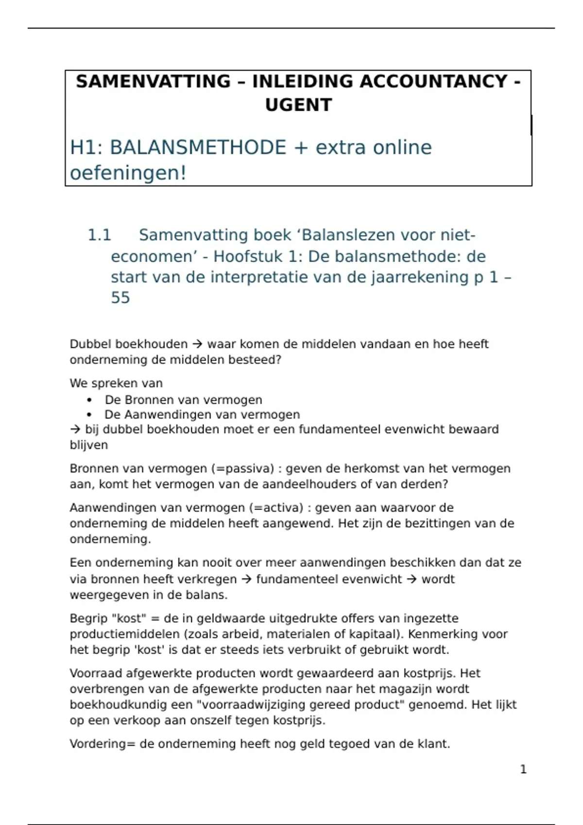 1.1 Samenvatting boek ‘Balanslezen voor niet-