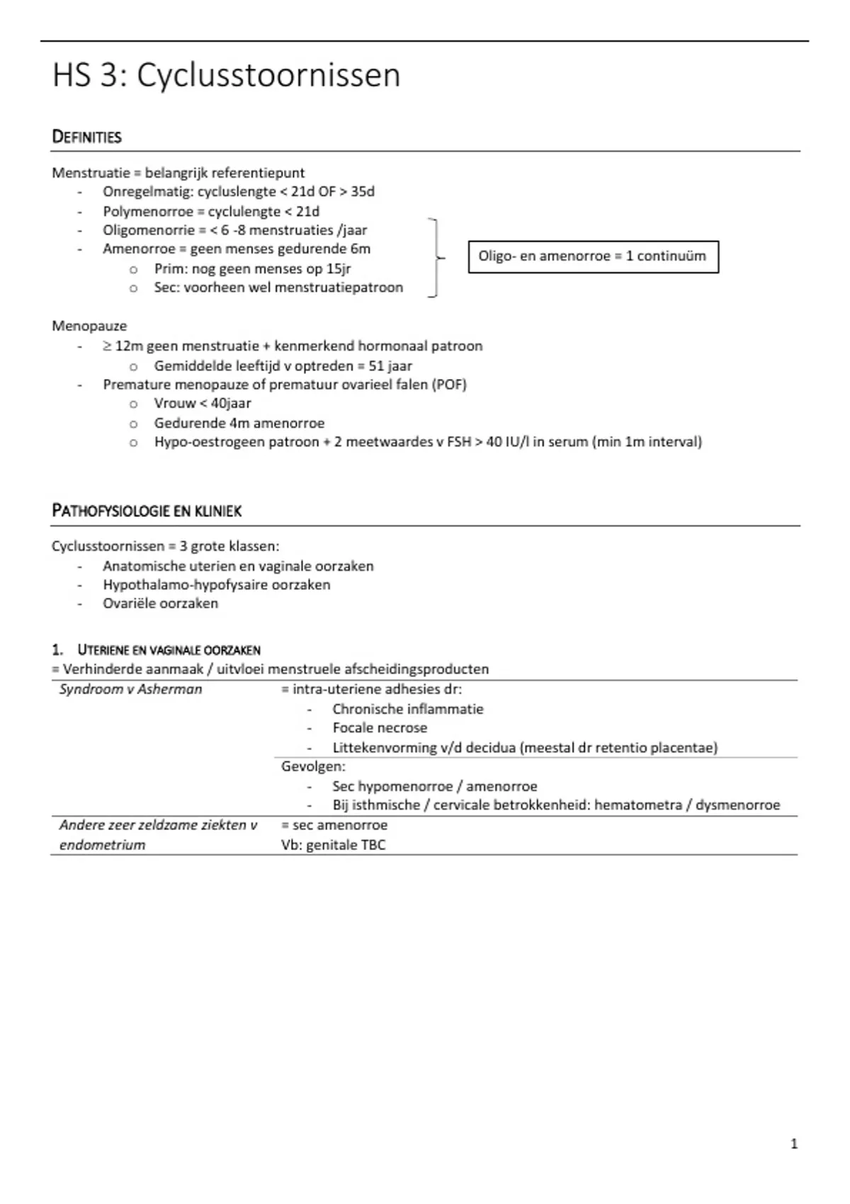 - Amenorroe = geen menses gedurende 6m Oligo- en amenorroe = 1 continuüm