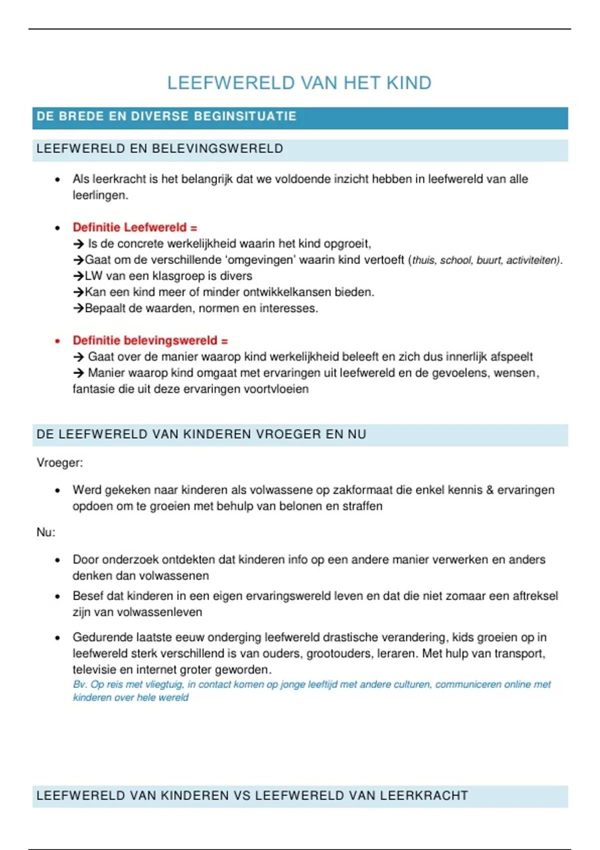 Leefwereld van het kind: samenvatting