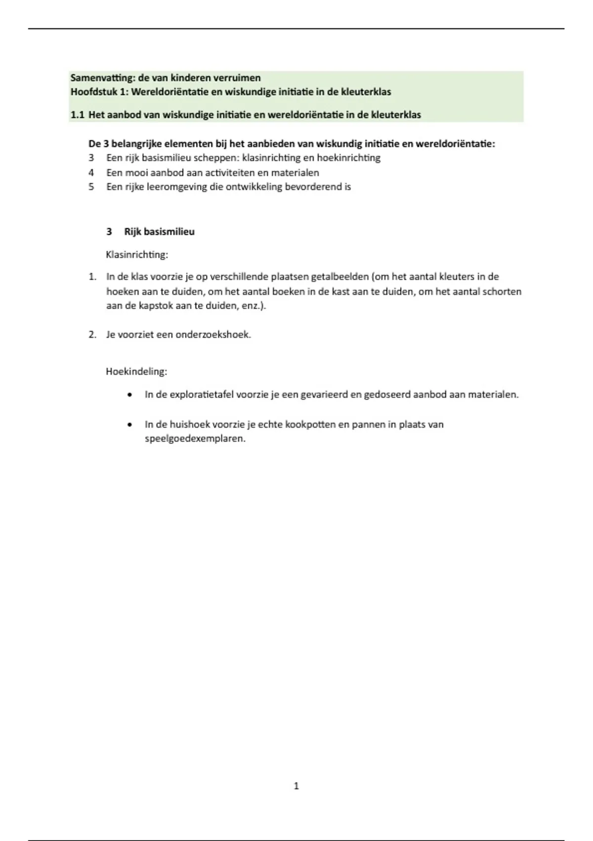 Hoofdstuk 1: Wereldoriëntatie en wiskundige initiatie in de kleuterklas