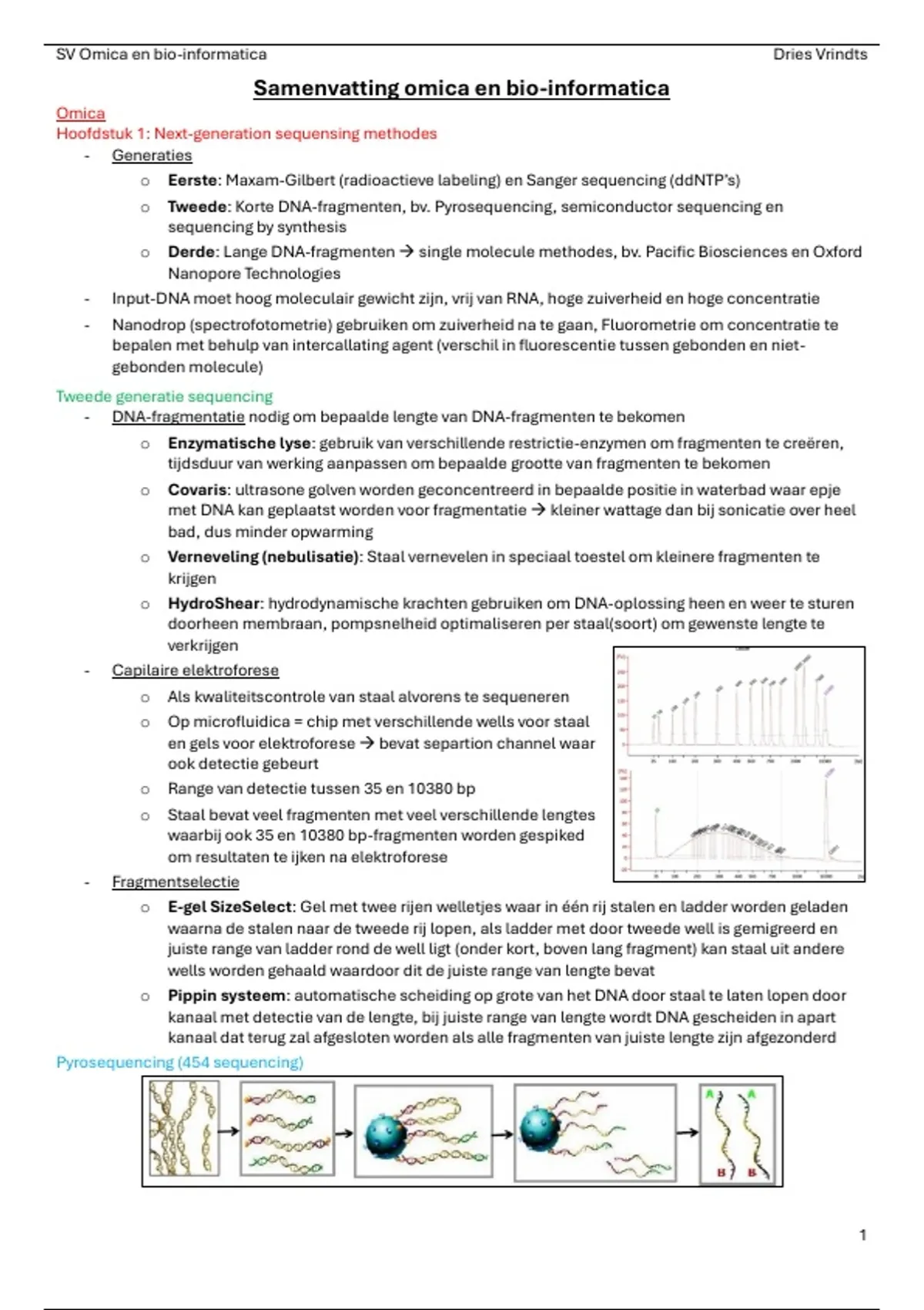Samenvatting vak Omica en Bio-informatica opgesplitst in de twee delen, lessen zijn omica en bio-informatica door elkaar