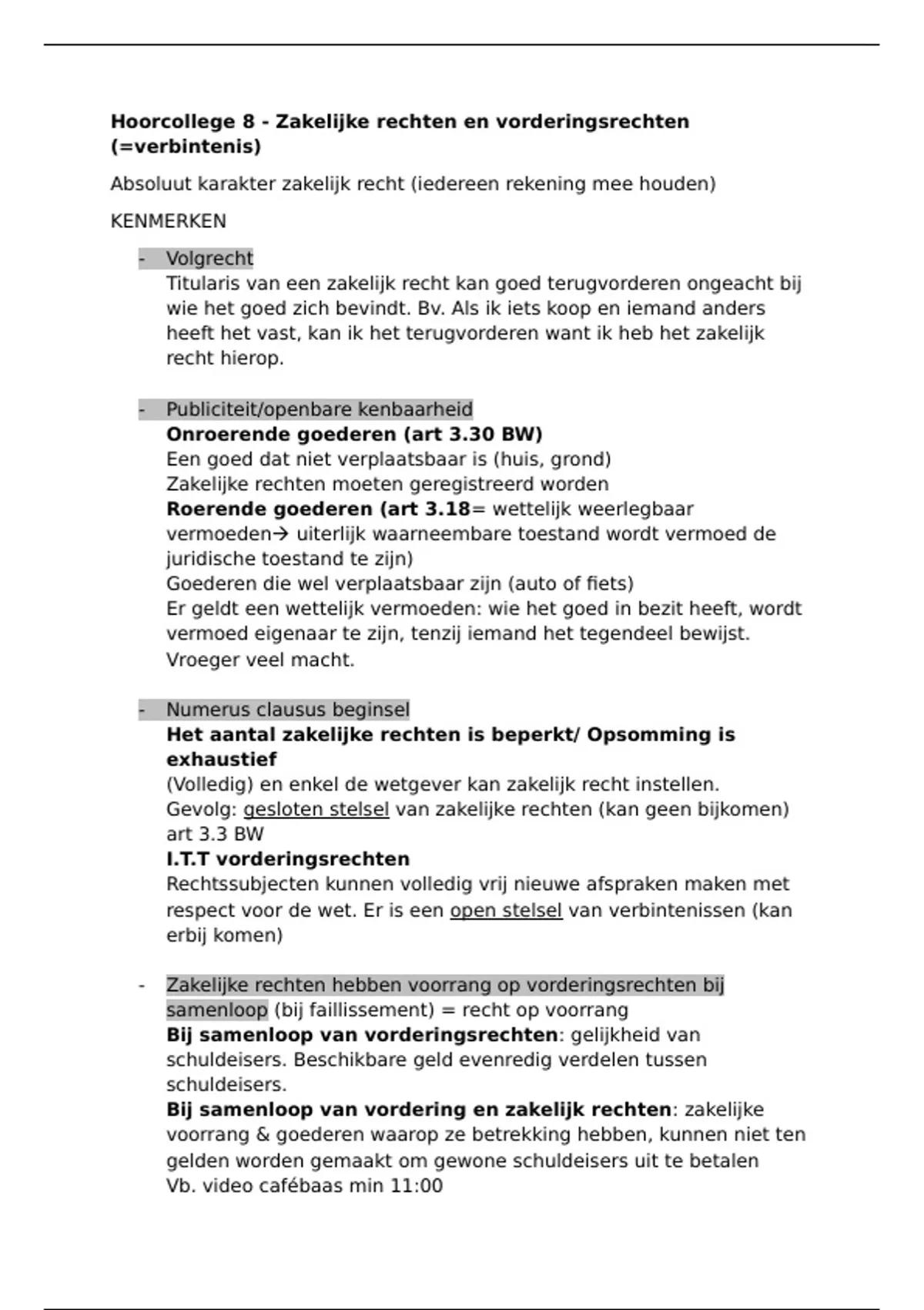 Hoorcollege 8 - Zakelijke rechten en vorderingsrechten