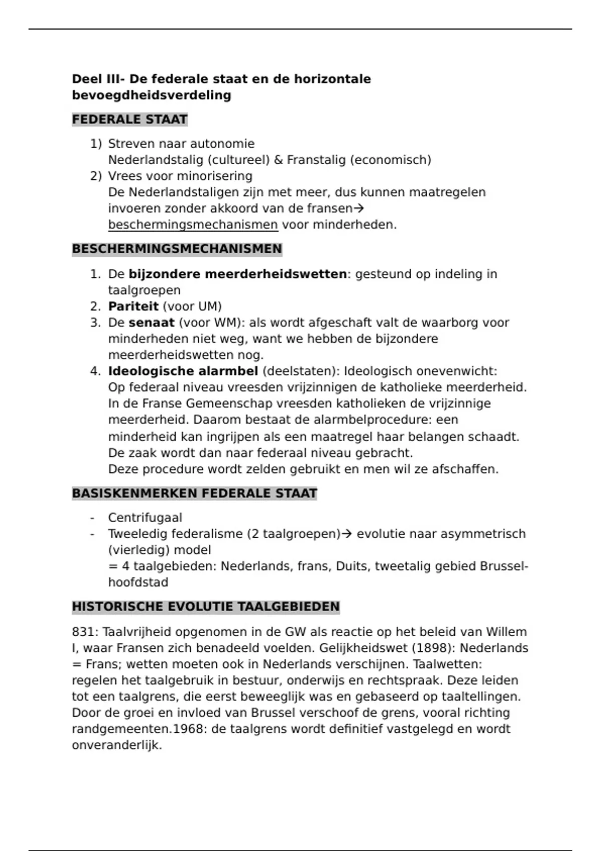 Samenvatting per deel van staatsrecht aan de UHasselt. Aangevuld met de cursus.